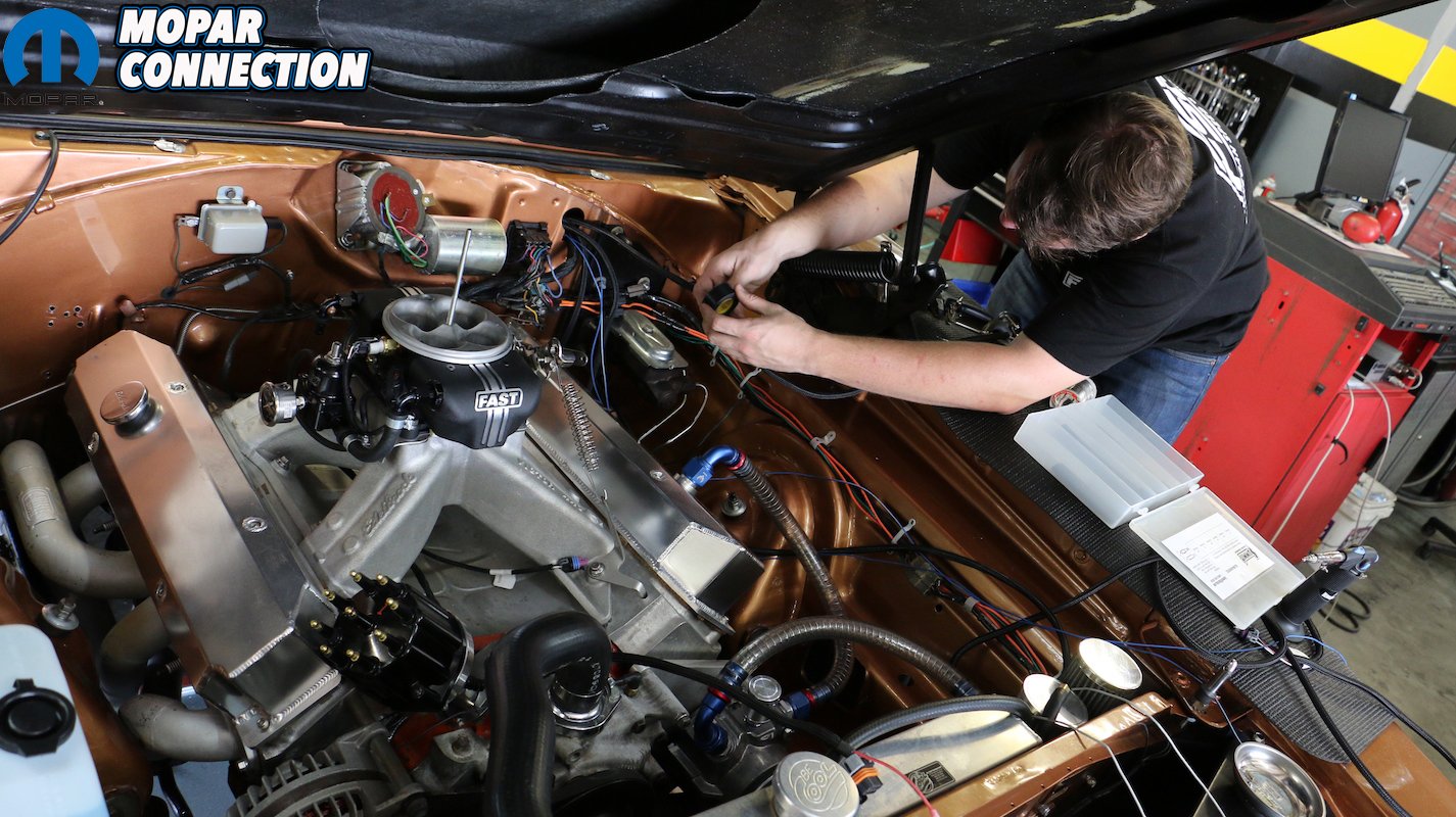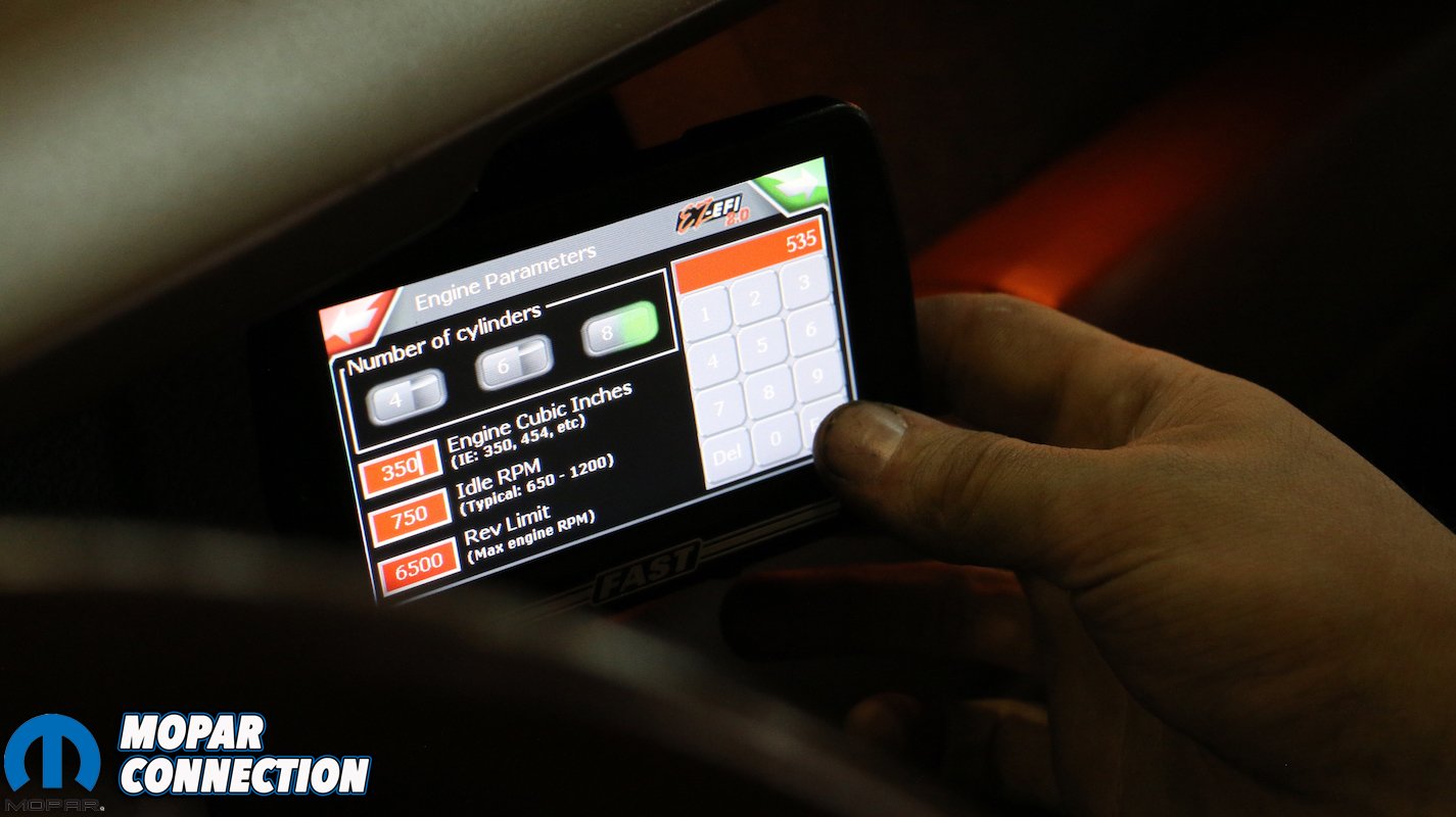 Above: While today was not the day to be making any big power pulls, we were very satisfied with how effortlessly the FAST EZ-EFI 2.0 fired up the Charger and brought it to idle. Even with temperatures swelling to well past 100 in the shop, the big Wedge rumbled better than it ever had before. While Petralia states that swapping from a carburetor to EFI shouldn’t produce any big horsepower gains (that is, if the carb is tuned properly), we can assure that throttle response and driveability have never been better. Ever. We’ll have a follow-up on the EFI’s progress soon enough with a true dyno pull once we’ve logged several more hours on the ECU.