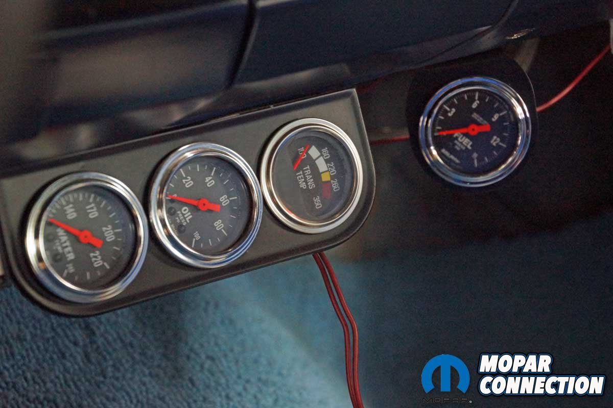 A factory temperature monitor was unavailable on our Dart in 1969. However, because the Dart sees extensive time at the strip, over twenty years ago, we installed a temp gauge similar to the Bowler gauge to keep tabs on the ATF temperature.