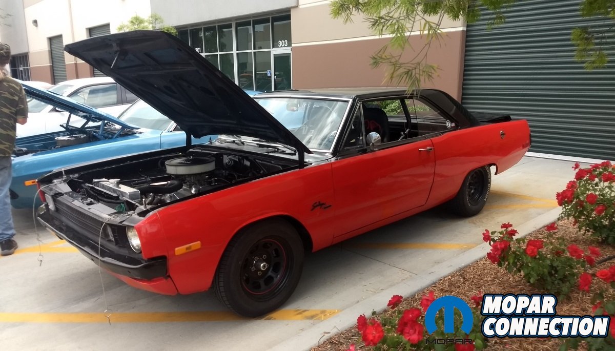 Another equally eye-catching A-Body was the 1972 Dodge Dart Swinger owned by Zach Rumpilla. In red with black masks and black wheels, it had a sinister, ready-to-race, almost a Trans Am look. Walking down the display line, we saw vintage A-, B-, and E-body Mopars along with late-model Mopars – Challengers and Magnums – along with a few non-Mopars thrown in for good measure.