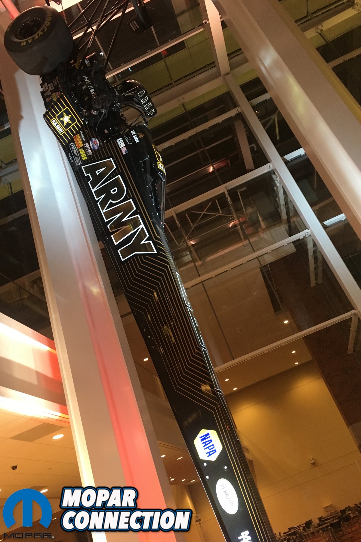 Above center: Top Fuel dragsters hanging from the ceiling are just your typical “PRI decor.” Above right: As the clock edged closer to 5, we headed back towards the entrance we came in. As we were chatting up COMP’s Chris Douglas at the CPG booth, we noticed a familiar face hanging out, David Freiburger from Hot Rod Magazine and “Roadkill.” Kevin, our Editor-in-Chief chatted David up having worked in-directly together over a dozen years ago while at Mopar Muscle, and grab a photo with him like so many fanboys. It was a great way to end a very long day.
