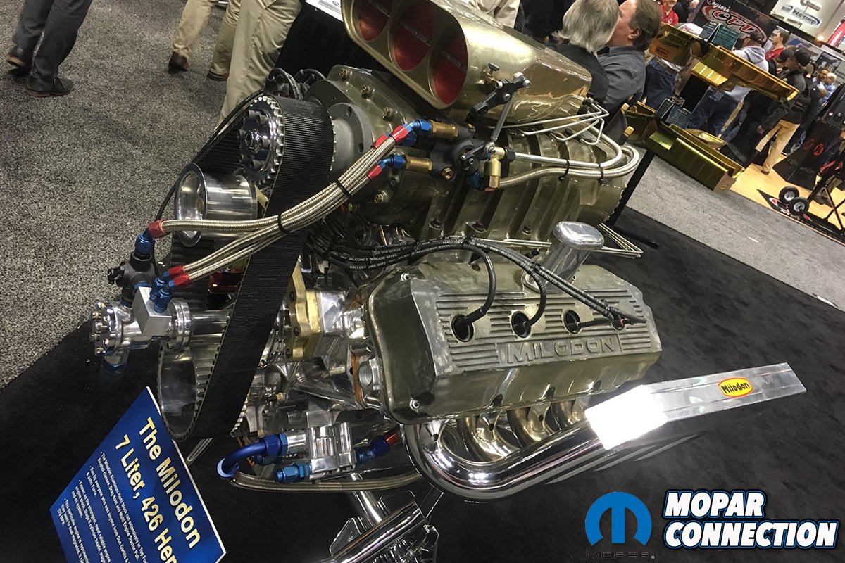 Above: Milodon was kickin’ old school with this blown all-aluminum 426 Gen II Hemi.