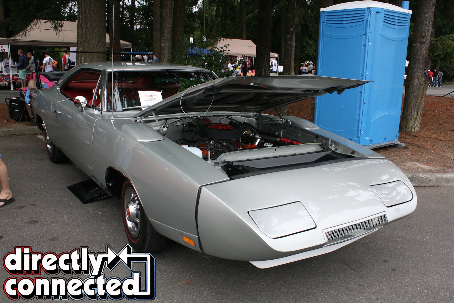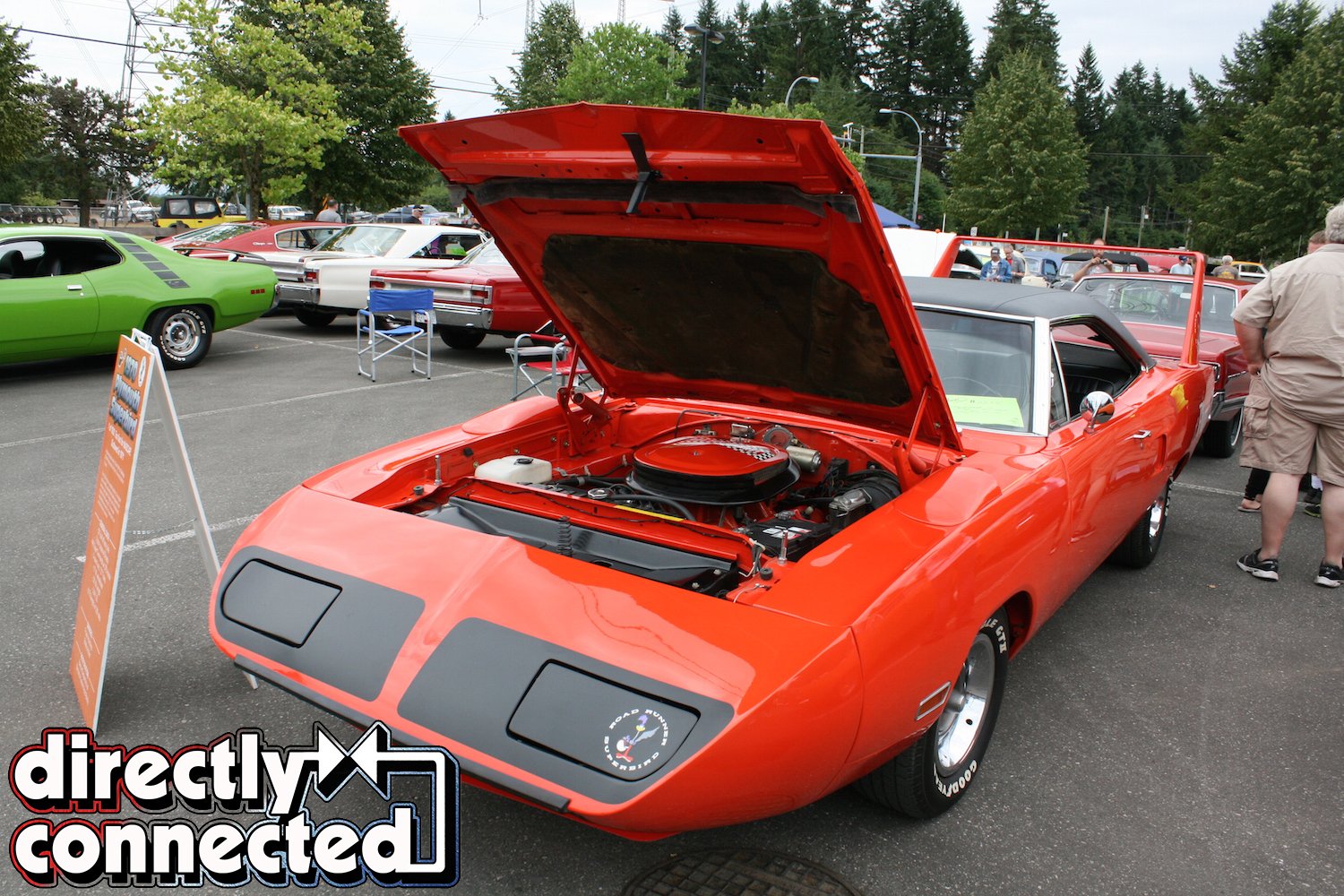 The forecast for rain didn’t scare off the Aero car guys either. The show featured two 1969 Daytona Chargers from Washington state, one of which was a 1-of-1 A4 silver 440-powered Daytona sporting red interior and a black wing and the other being a Hemi Orange example! It also featured a T7 Bronze 440 powered 1969 Charger 500 and a V-code 1970 Superbird! Other very strong turnout numbers included the C-body and front-wheel-drive classes.