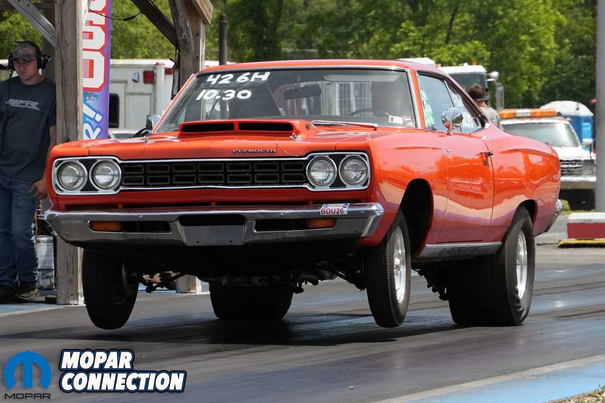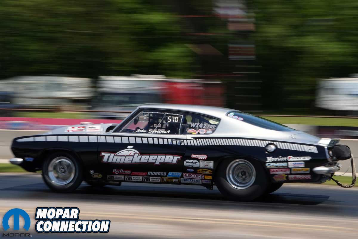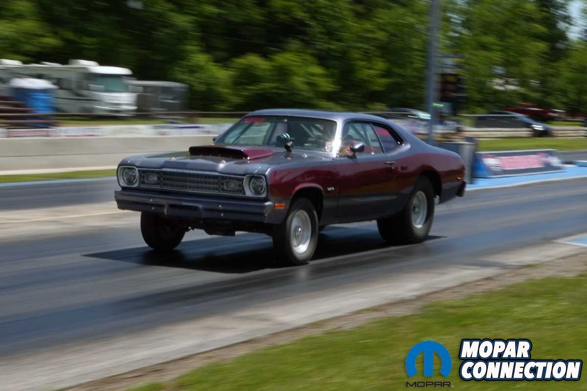 A fourth class, called Pro Mopar, was comprised of the quickest eight cars pulled from the Hi-Po Mopar class. The eight vehicles were put on a ladder and run heads up, leaving off a .400 pro tree and running an 1/8-mile. The four first-round losers of the Pro Mopar class would have a free entry back into the second round of Hi-Po Mopar.
