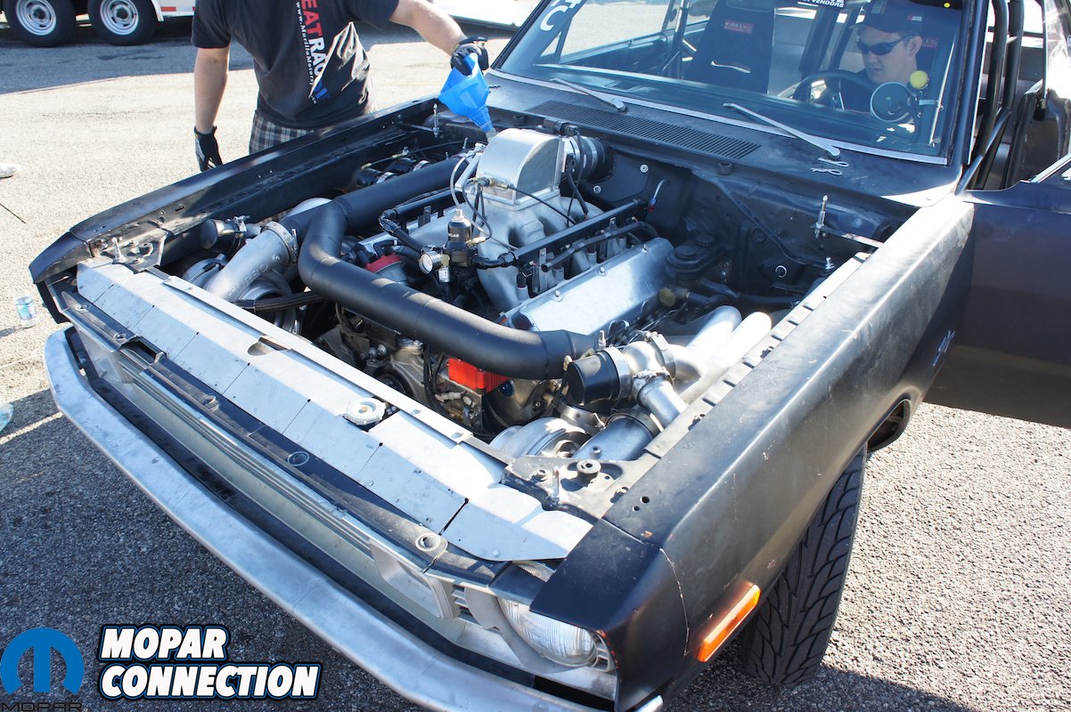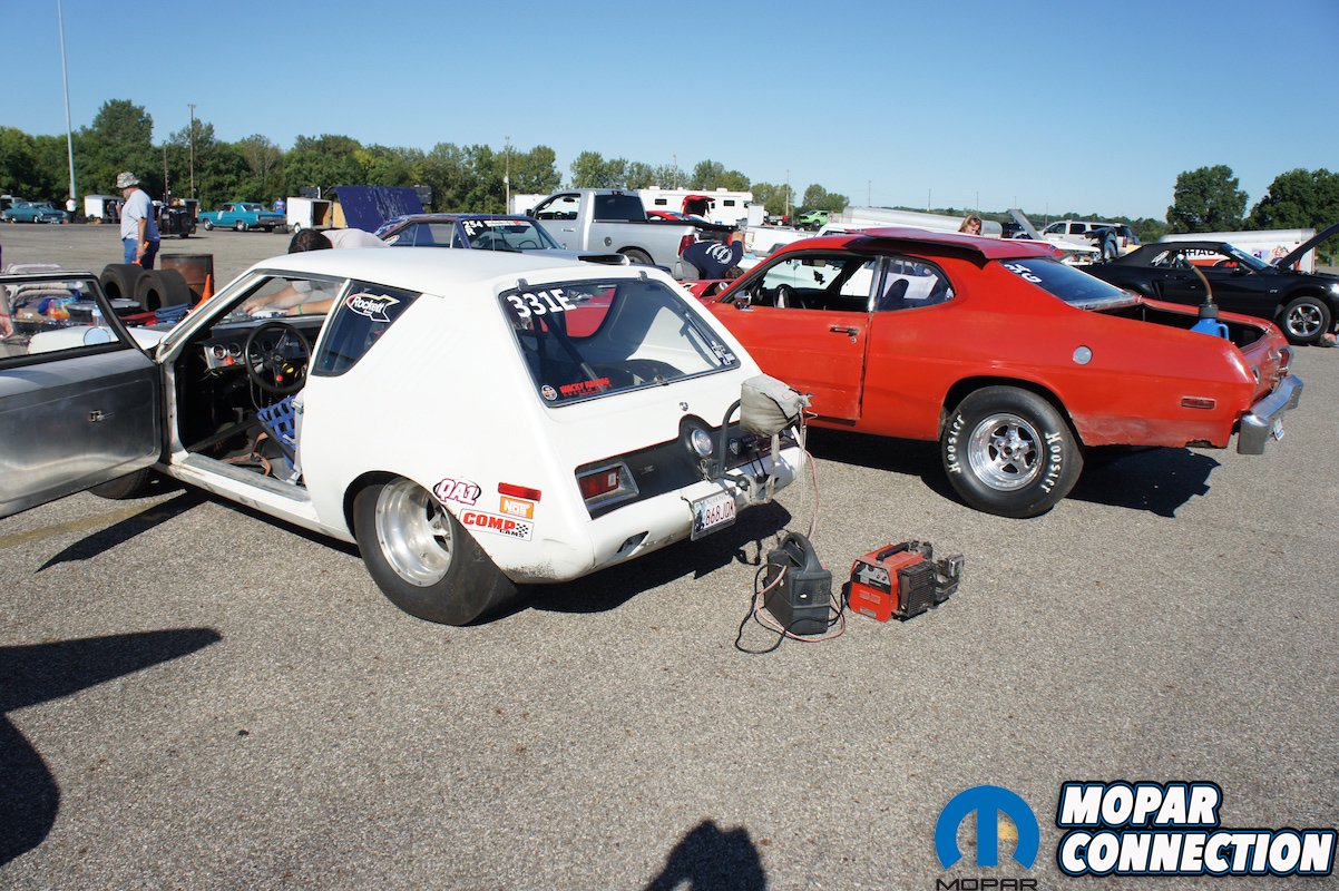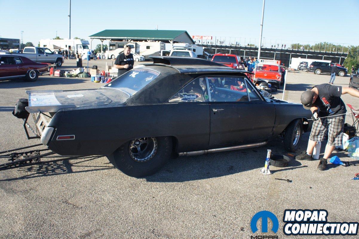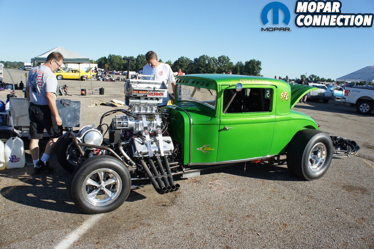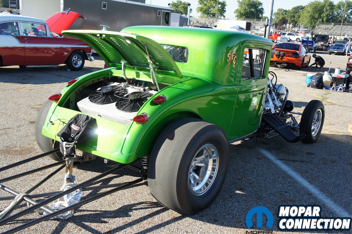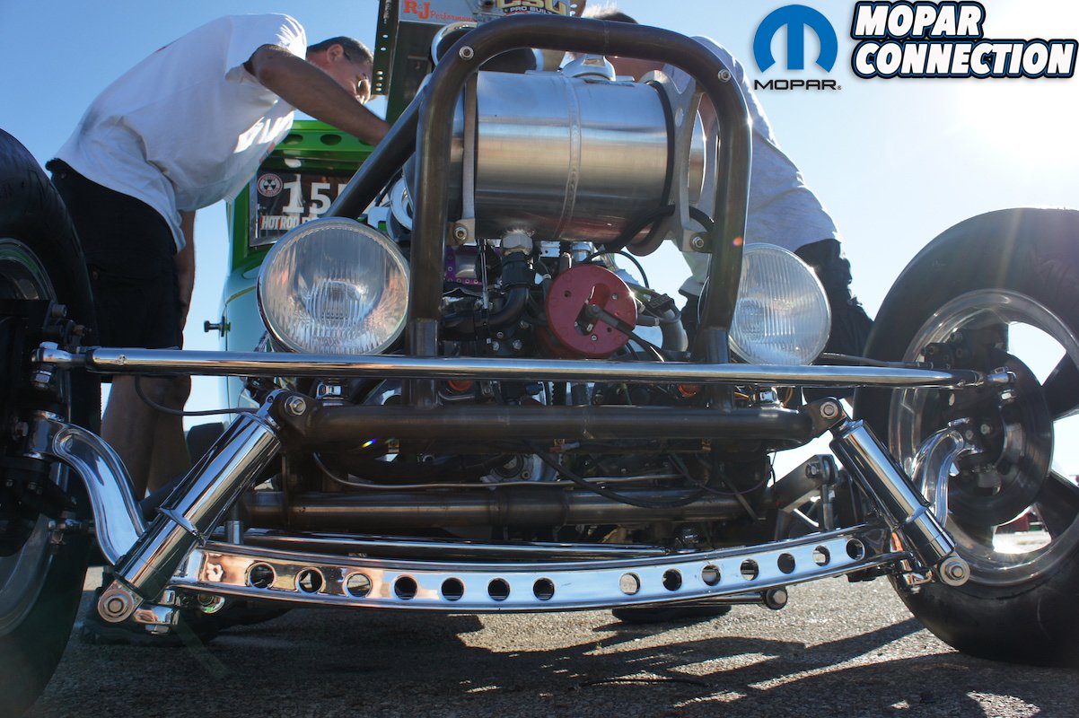 We soon found out that tech inspection and test and tune were yesterday. Some of these guys got to make a pass or two and were ironing out problems, while others didn’t make a pass and were still tuning the car. We were amazed how many stories we heard where guys were still working on their cars Saturday night and still had a 10-to-15 hour drive to the track! We came across a ’31 Plymouth Coupe that was basically built in a day. They did not receive the chassis back from the shop until that Friday before! They told Mopar Connection that the sheet metal was never hung on the car and had issues like getting the gas pedal mounted. The car was thrashed on for just over a day and half to make it here yesterday.