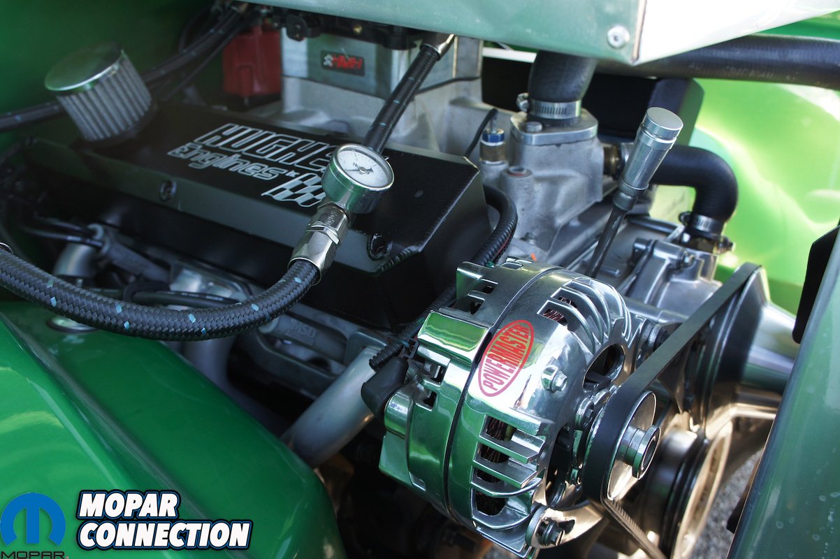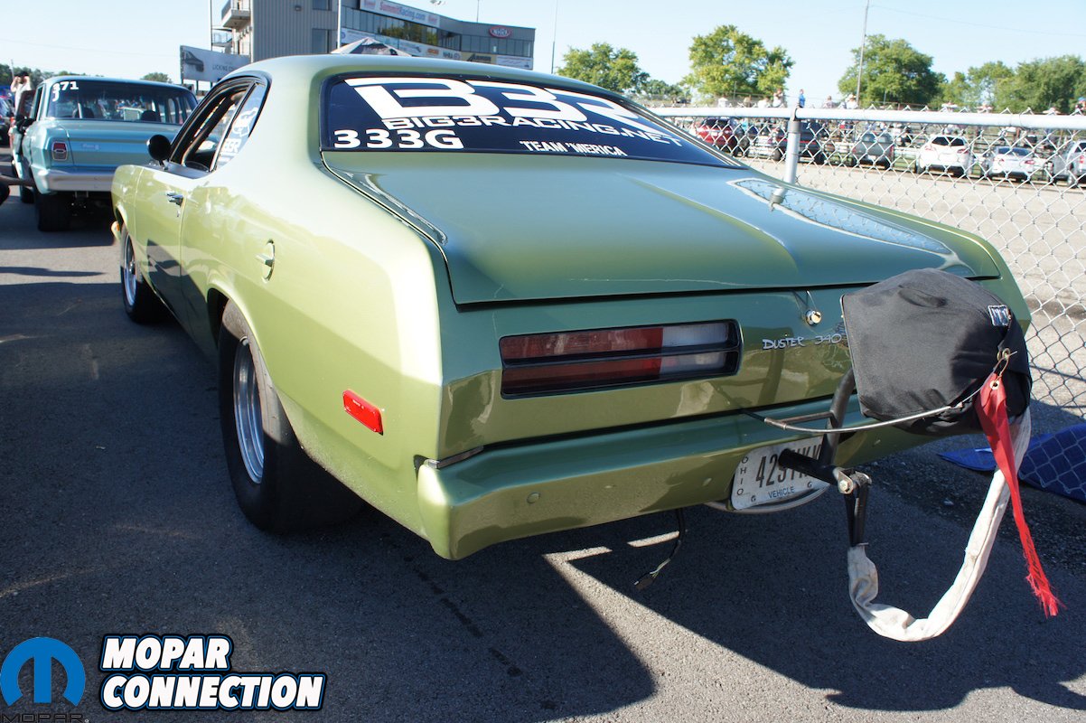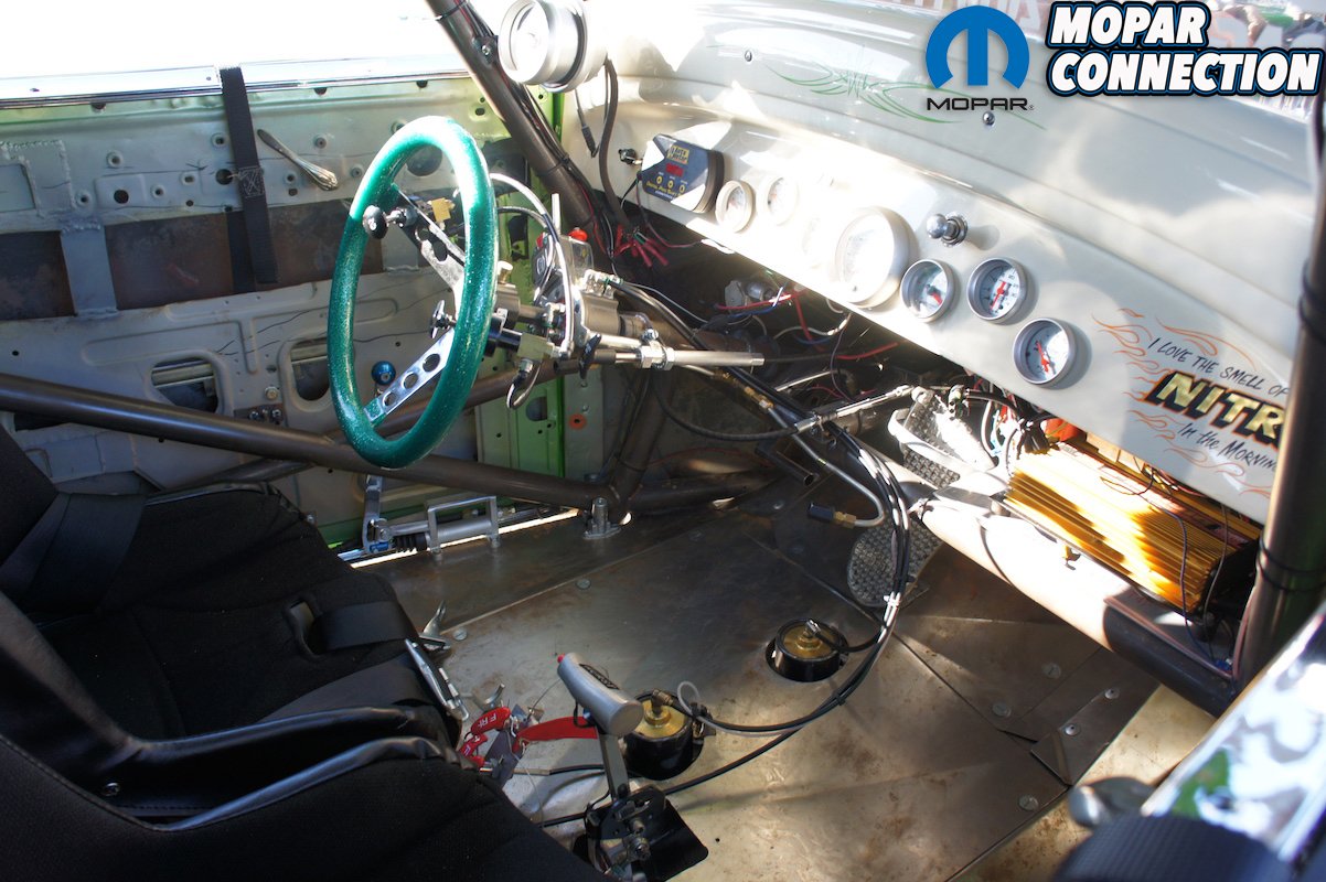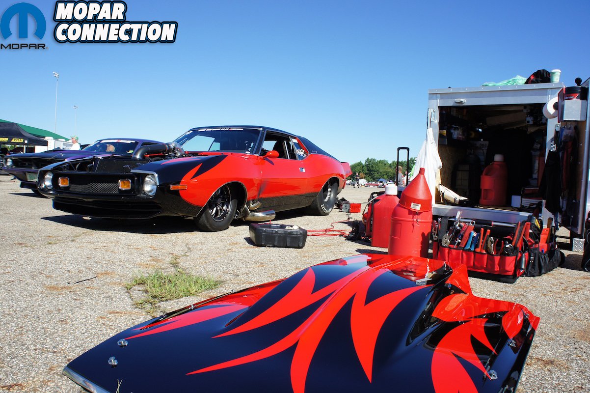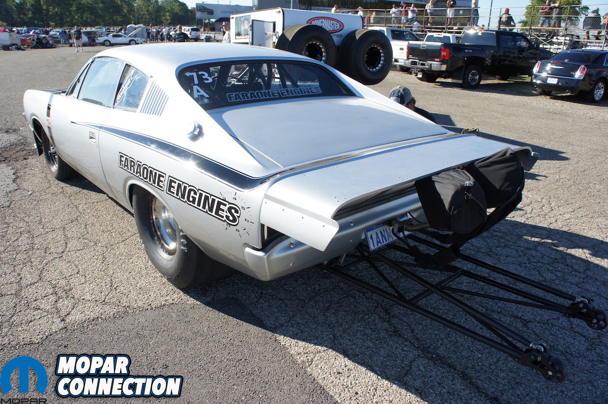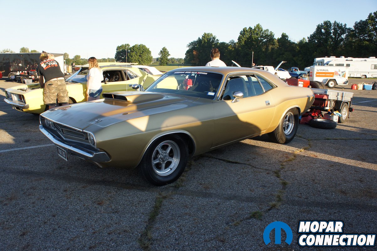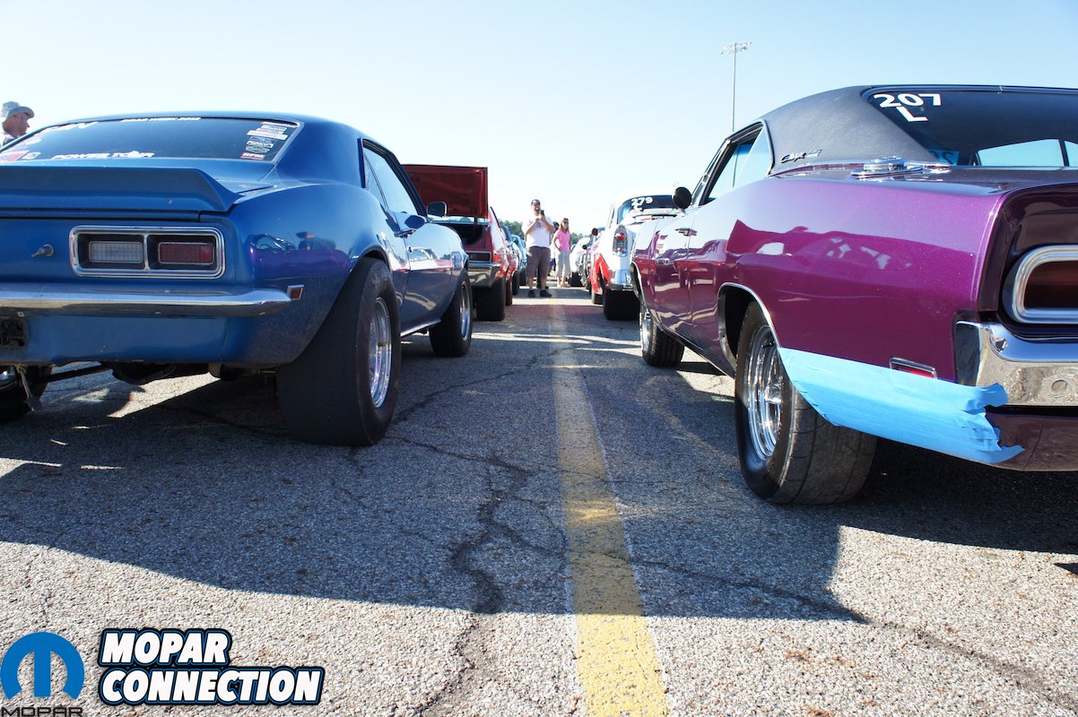 We soon found out that tech inspection and test and tune were yesterday. Some of these guys got to make a pass or two and were ironing out problems, while others didn’t make a pass and were still tuning the car. We were amazed how many stories we heard where guys were still working on their cars Saturday night and still had a 10-to-15 hour drive to the track! We came across a ’31 Plymouth Coupe that was basically built in a day. They did not receive the chassis back from the shop until that Friday before! They told Mopar Connection that the sheet metal was never hung on the car and had issues like getting the gas pedal mounted. The car was thrashed on for just over a day and half to make it here yesterday.