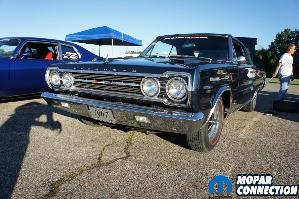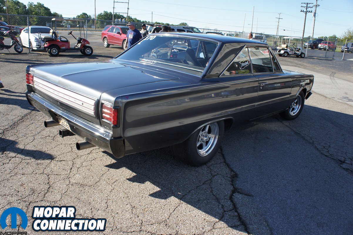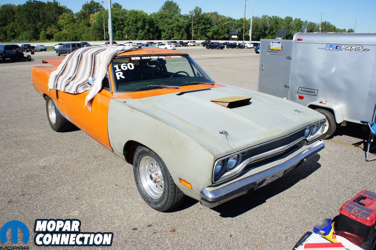 Then we came across guys whose Plan A and B didn’t work out, and went with Plan C, which happened to be an original ’67 Hemi GTX convertible. This was an original 50k mile, unrestored (except a paint job at one point), matching-numbers Hemi car. It is also equipped with power windows and top. They have run this car in a past at Drag Week, but had a couple other cars in mind to race this year only to have them fall through, and resigned to pulling their GTX out of storage, threw on a exhaust manifold gasket and were off.