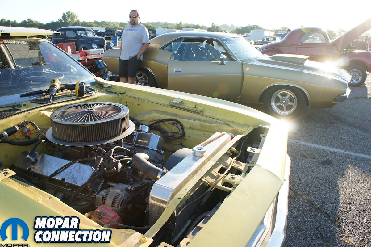 We’ve never seen such a variety of cars like this before in one spot, and the best part is everyone was incredibly friendly! Guys are still thrashing on their cars, yet willing to talk to you. We were talking with couple guys from Texas working on a ’73 ‘Cuda, as they were trying to diagnose a ticking on their big block only to find out that the adjuster on the rocker had backed out of the rocker arm. It didn’t seem to do any major damage but did have some metal flake in the oil that was concerning them.