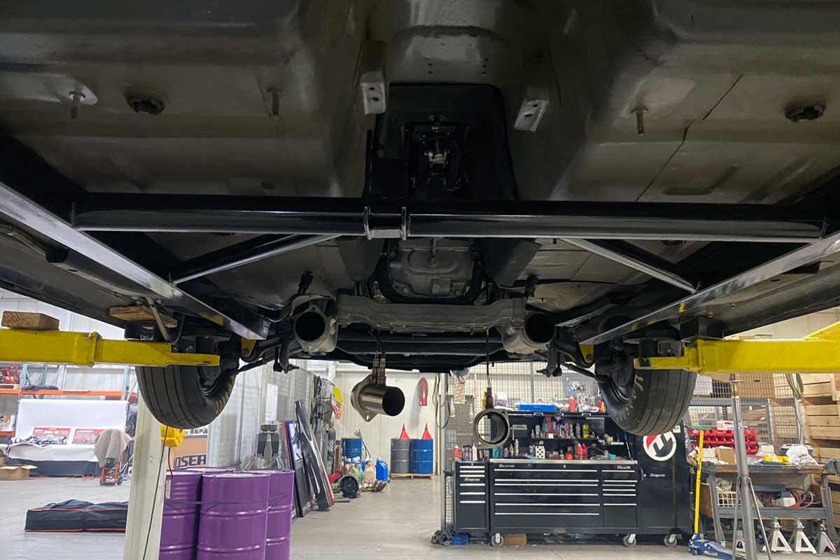 Once the Challenger is modified with the Moser products, returning the suspension to stock will be challenging due to portions of the substructure’s removal. In addition, the fuel system will have to be changed, and those modifications may require ECU adaptations that will deem the Challenger to an off-road use-only status.