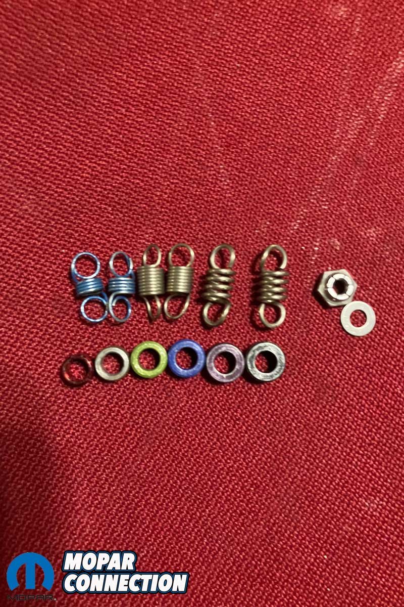 We selected the black bushing with an 18° centrifugal limit. MSD provides detailed instructions and diagrams of the advance to rates and curves. Based on the charts, we decided to match the black bushing with a set of two blue-light springs, which will provide a full advance at 2500 rpm, where our converter stalls.