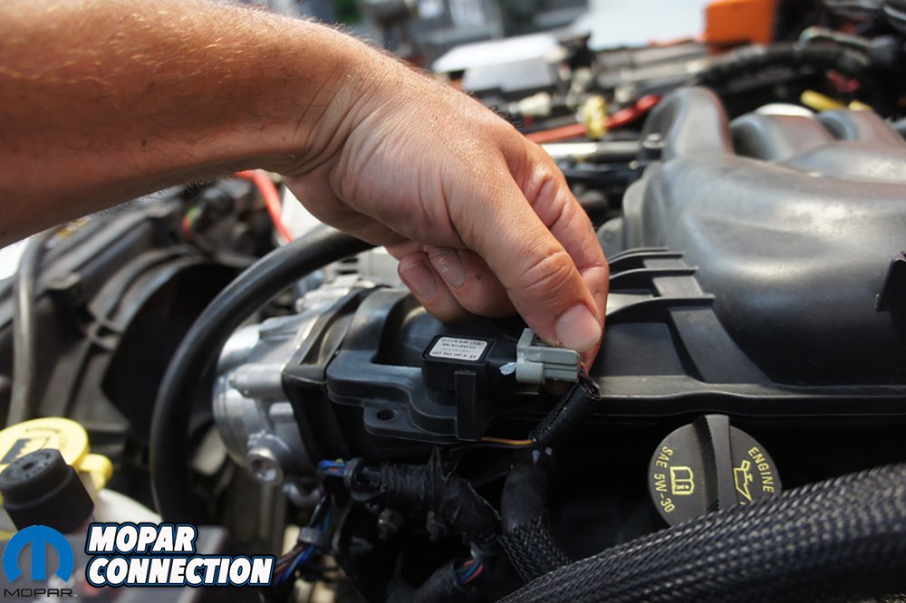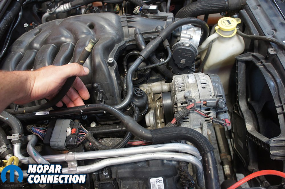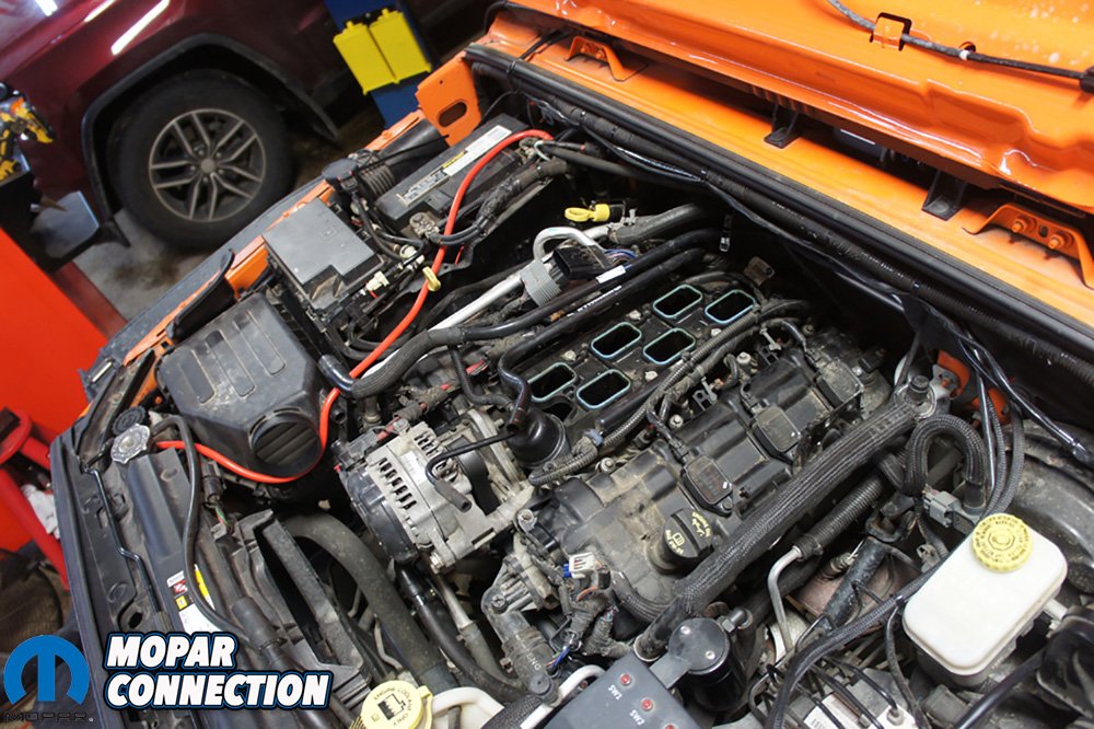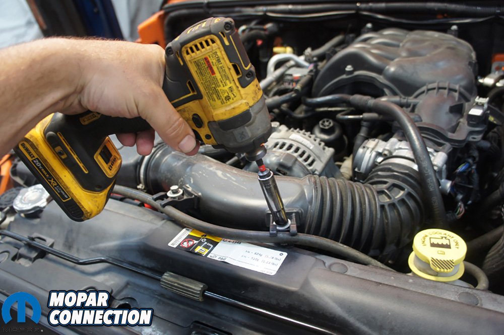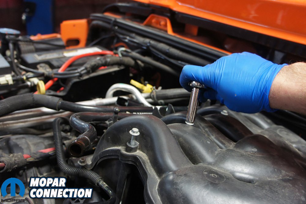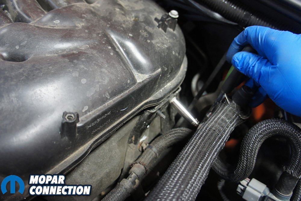 With the Pentastar 3.6 engine, we could not do that. The upper plenum or top half of our intake covers up the driver side valve cover with no way to access the coil packs with it running. Although these are great engines, this is one downside of their design.