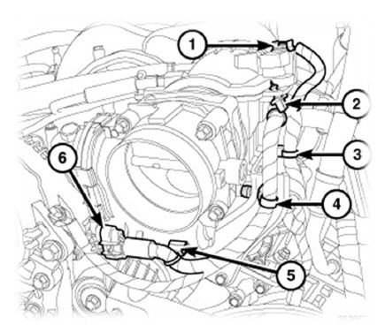 Above: Here are a few photos we found from Sprintex Supercharger installation manual, but they help point out a lot of the bolts and connections that need removed for the intake to be removed.