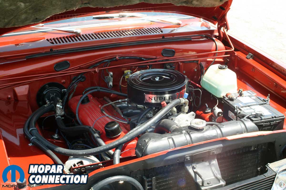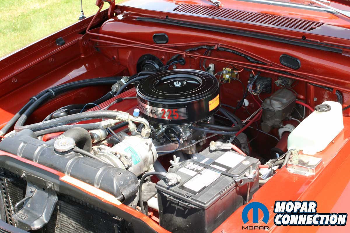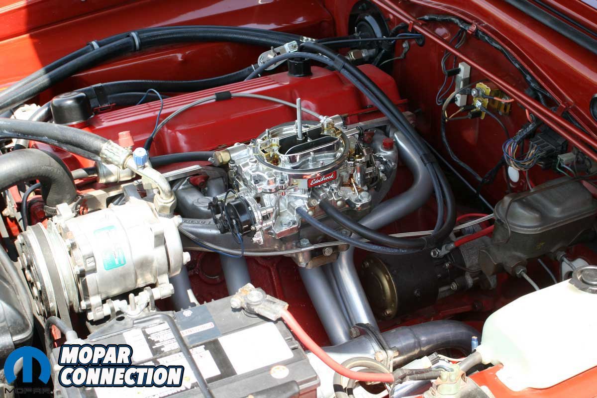 The build includes a Comp cam, Offenhauser intake, Edelbrock 500 cfm AVS carb, Clifford headers, and 2½-inch stainless exhaust with an original-style resonator. Output is estimated at 200 hp, and the reliable slant six still delivers 25 mpg. Power runs through an A833 four-speed and 8¾ rear with 2.76 gears, perfect for highway cruising.