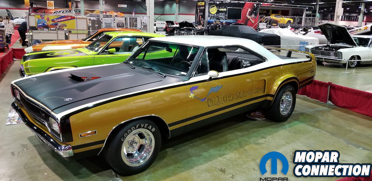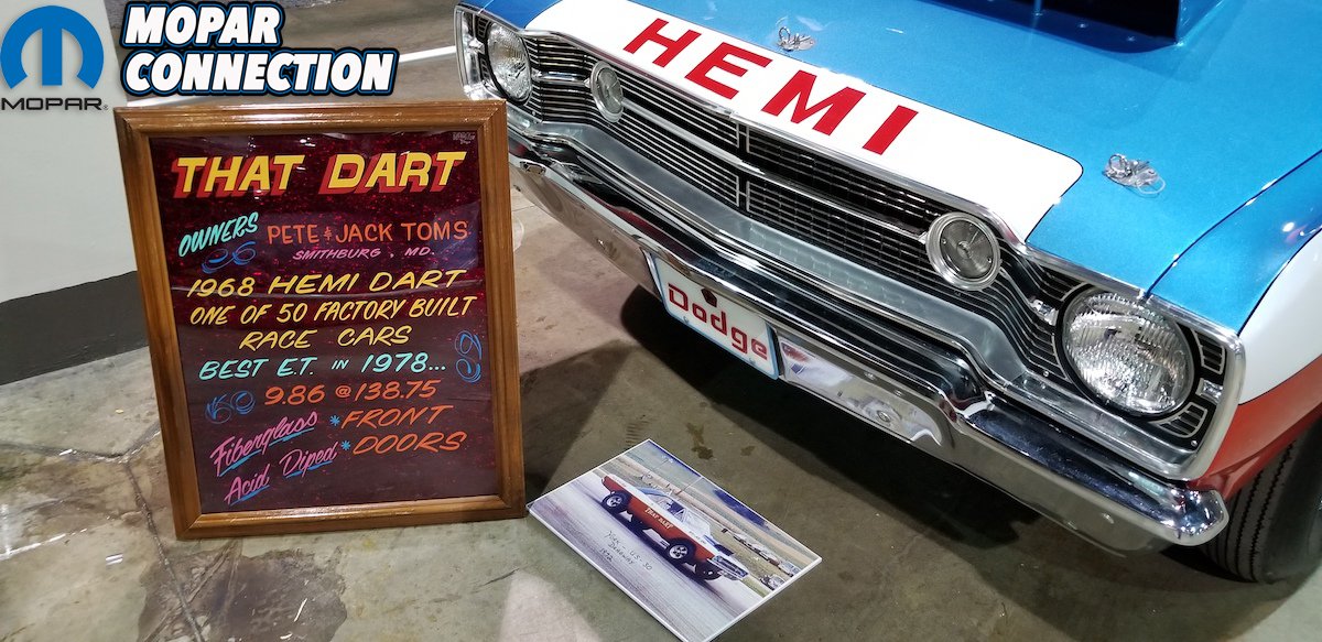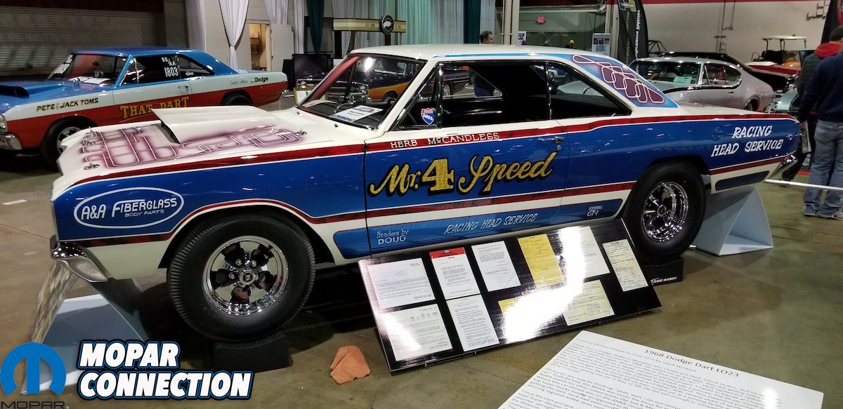 To get even a bit more odd was George Barris “Corky” ’66 Barracuda was just a blast from the past! This was sitting in the atrium before the show gates. As you walked in a little farther you came across the display the 1968 LO23 and BO23 Hemi Darts and Barracudas. Herb McCandless was by his Mr 4-Speed Dart and was a Gentleman to talk with! Walk a bit farther and you came across a wall of Hemi cars, each and every one was a car to drool over.