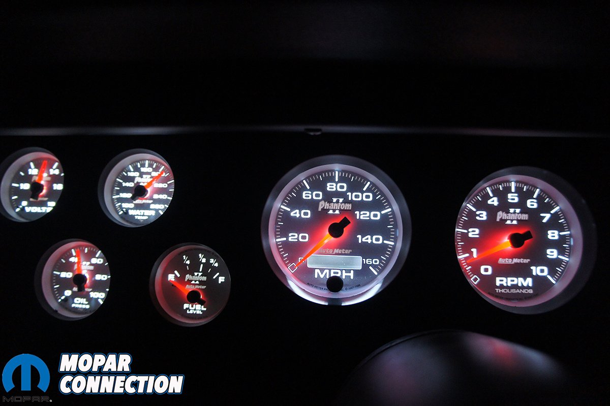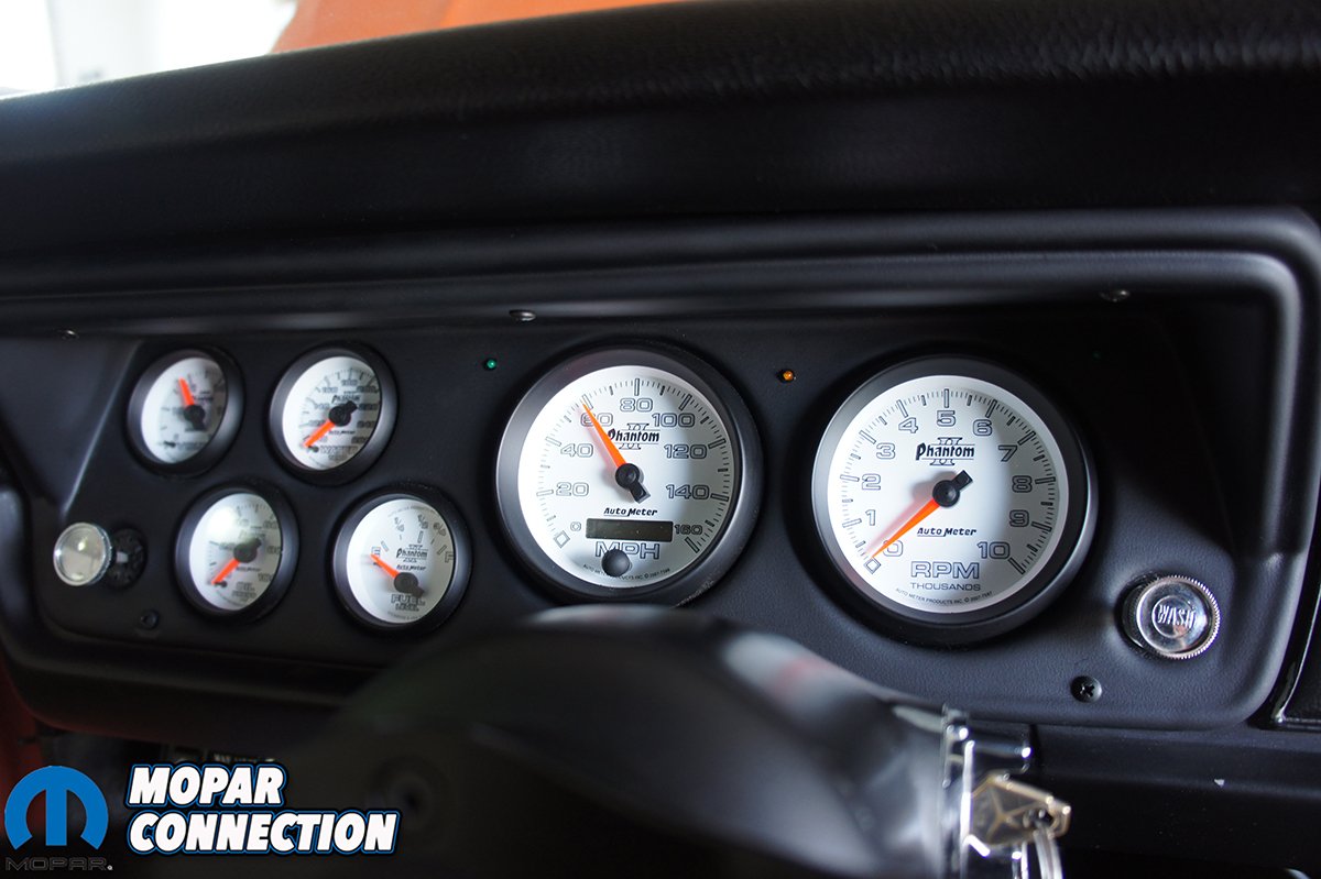 Above: AutoMeter Phantom II gauges and Classic Dash gauge cluster and steering column cover.