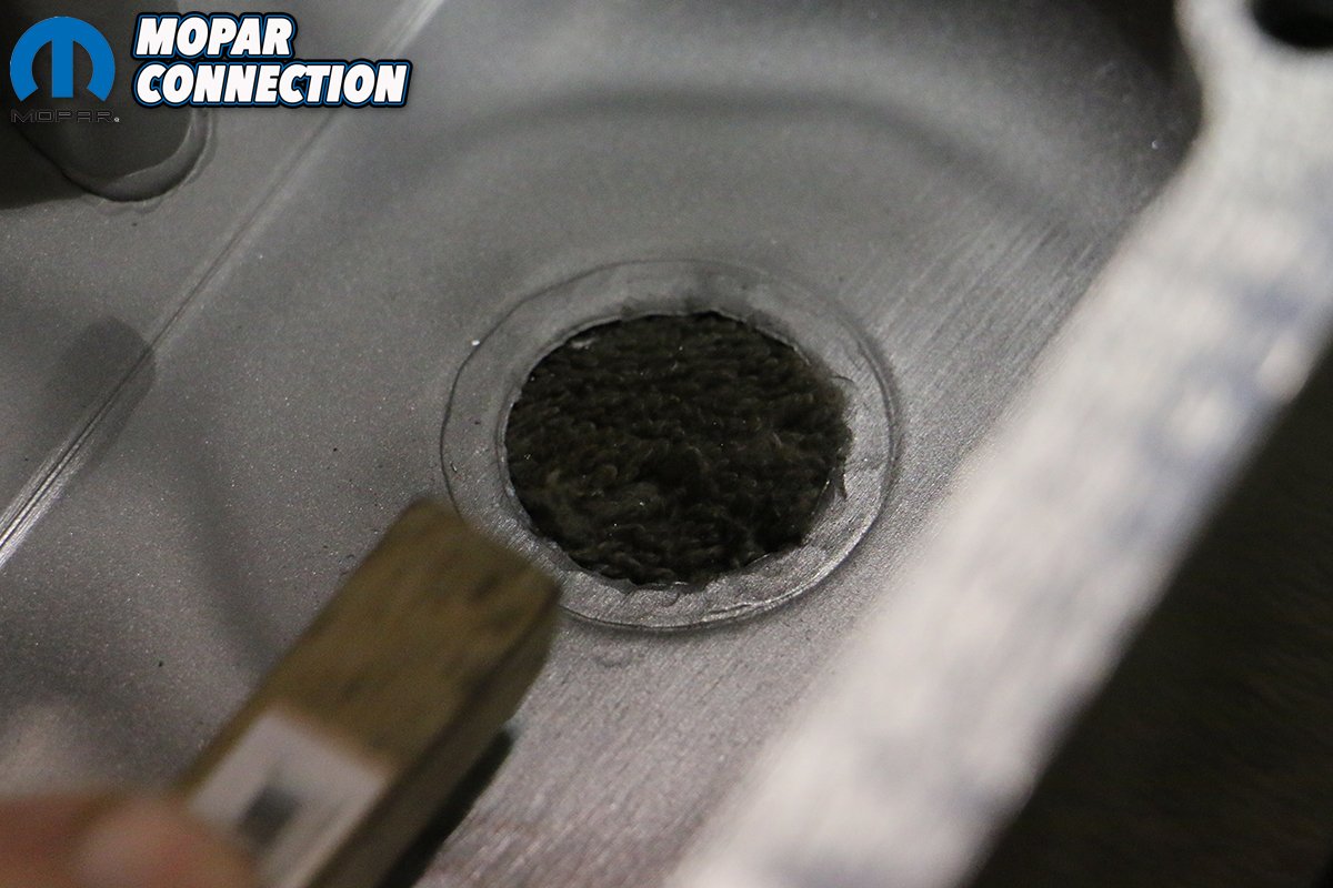 Because the first sign of abnormally high crankcase pressure is oil being pushed out anywhere it can, our first move was to follow Ma Mopar’s steps, and install a traditional PCV (positive crankcase ventilation) valve in one of the valve covers. Chrysler discovered early on that even the basic 440 4-barrel engines produced excessive crankcase pressure, requiring the PCV valve to allow the engine to operate below atmospheric pressure.