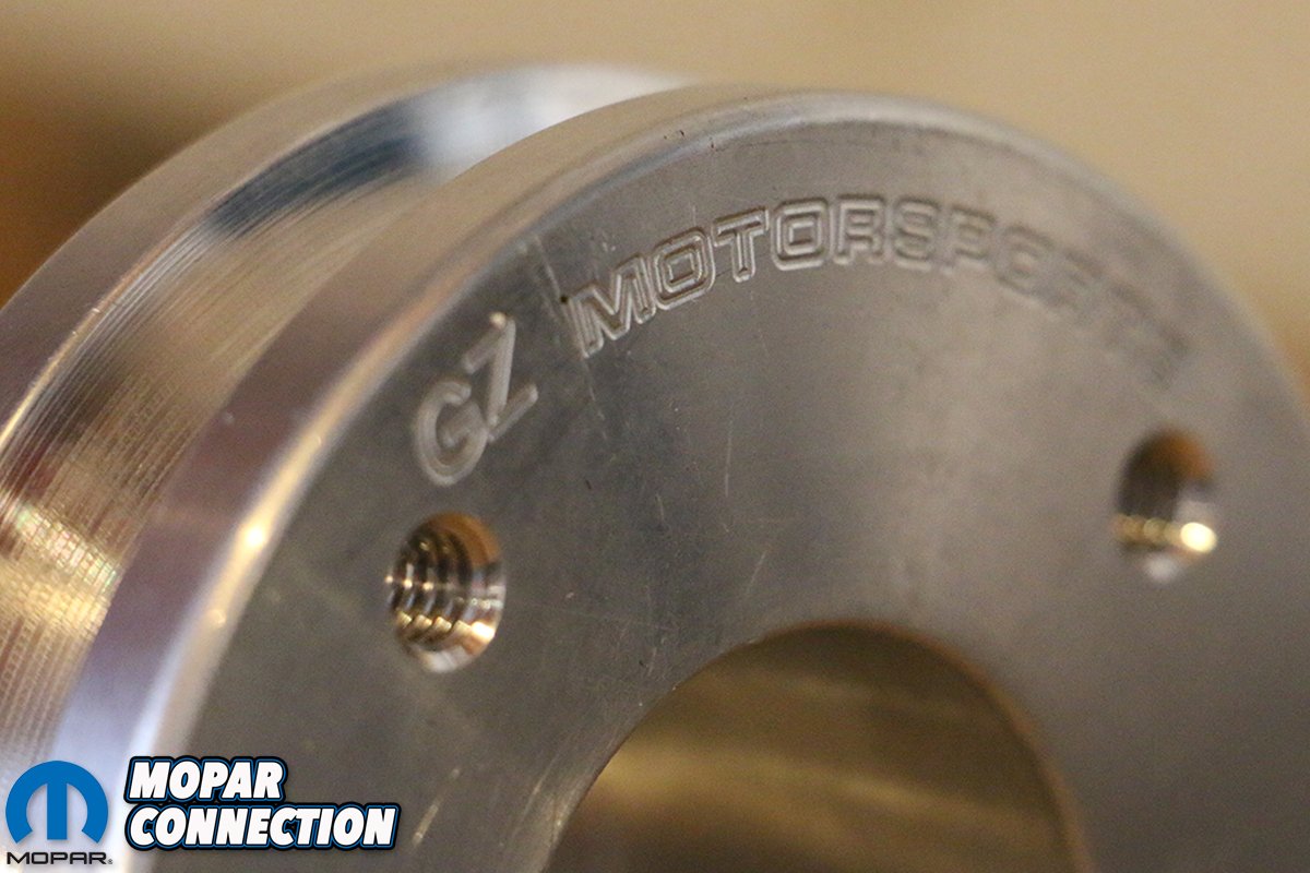Because our engine was seeing primarily street use, Huntington recommended GZ Motorsports’ Sportsman Complete Racing Vacuum Pump Kit. True to its name, the kit includes everything necessary to install on most Mopar applications (VP 102 pump, pulleys, billet universal mounting bracket, billet crank mandrel, Gilmer belt, braided hose, breather tank and vacuum-control valve), if only requiring a little ingenuity. GZ does caution that those looking to mount the VP 102 pump to the driver’s side cylinder head (Mopar big and small block) should call ahead for suggested mounting options – depending on the type of heads being used.