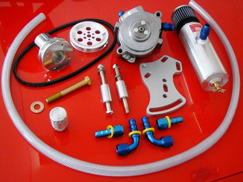 Above: Because our Project Brazen was seeing mainly street use, GZ Motorsports suggested their Sportsman Complete Racing Vacuum Pump Kit. True to its name, the kit complete with all of the hardware, -12 AN fittings, hose and belt necessary to install your external vacuum system relatively effortlessly.