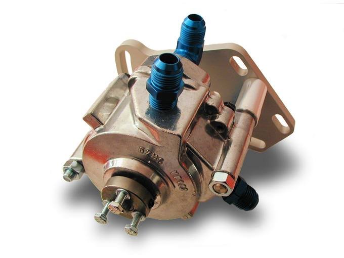 Above: GZ Motorsports offers different sized external (belt-driven) vacuum pumps to best suit your application’s needs. Left is a VP 102 with a VP 104 on the right. Because too much vaccum can have adverse effects on your engine’s oil pressure, while not enough vacuum will fail to resolve your blow-by issue, GZ Motorsports recommends properly tuning your pump by maintaining an eye on your oil pressure, as even the recommended 12-to-15 inches of vacuum can yield a 8-to-12 psi drop in oil pressure.