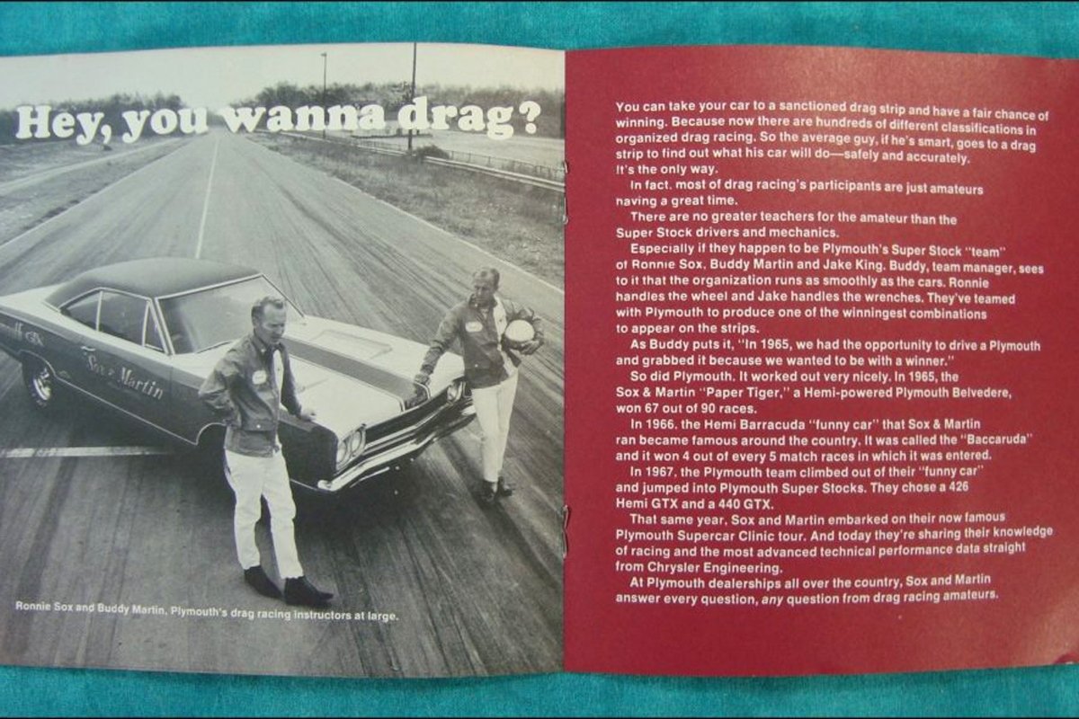 A couple of weeks ago, we introduced Jim Ramsey and Joe Schulte in the editorial Ad Agency Guys Behind Muscle Car Era Ads Will be at Carlisle. However, did you know their Plymouth advertising influence extended to advertising other than print media? Recently, we learned about an electric 1/32-scale drag set from Plymouth. The track was called “Shutdown! Plymouth Super Stock Racing Set, and its cover art graphic was straight out of “the Beat Goes On” Plymouth campaign.