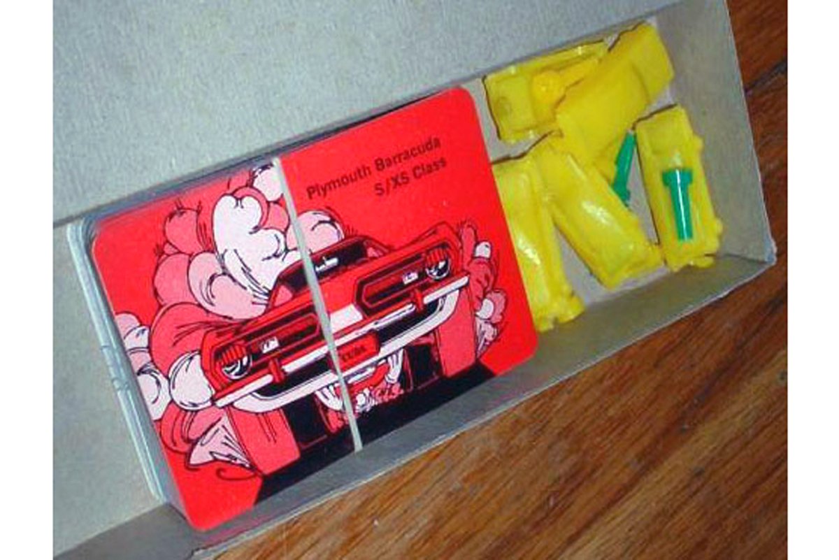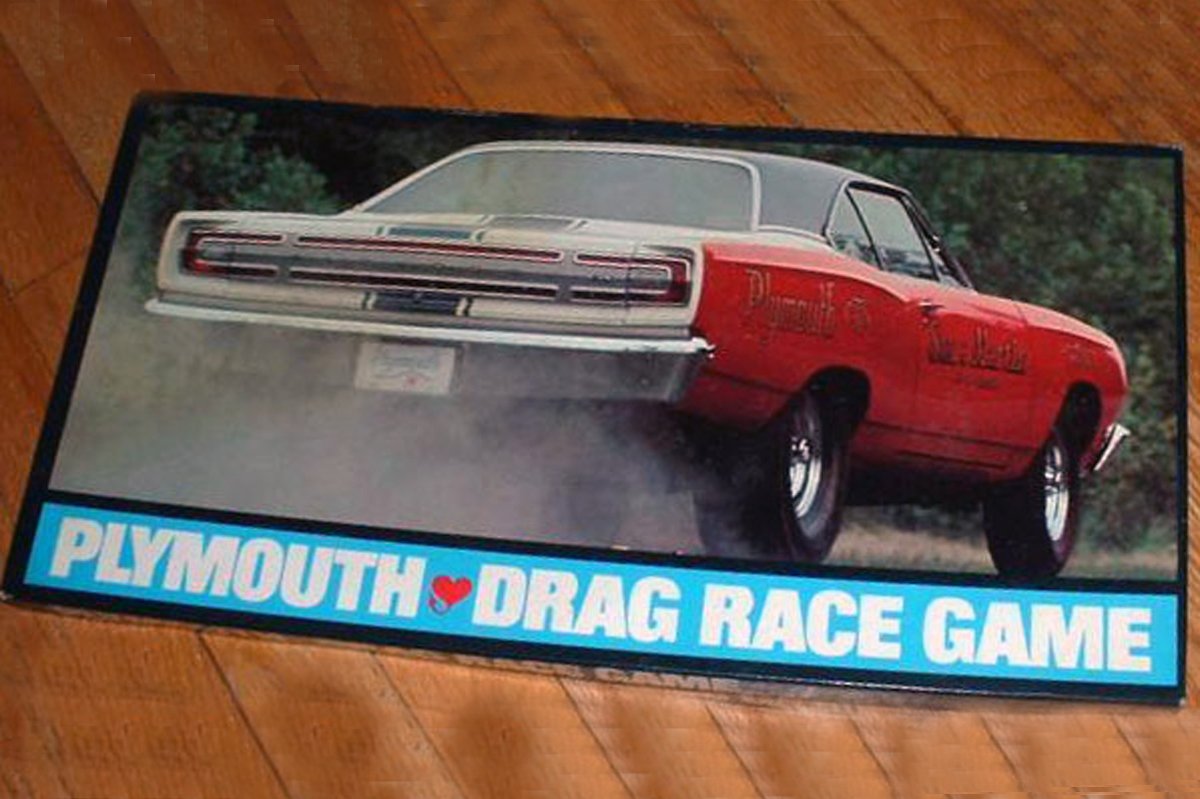 If an electric racetrack was not for you, Plymouth also had a drag racing board game, which was equally fun for the whole family. The promotional drag racing game featured six 1968 plastic cars (two Barracudas, two Road Runners, and two GTXs), three sets of action cards, plastic pegs, and an instruction sheet printed on the backside of the game board.