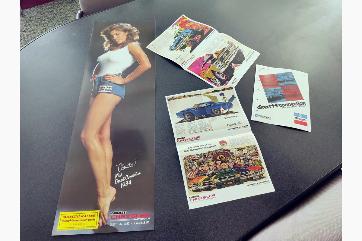 Above Left: If you can’t find a drag game, there are still freebies for entrants to the Carlisle Chrysler Nationals. Miss Direct Connection, Claudia will be at the Mancini Racing trailer on the Midway, autographing a 3-foot reprint of her famous 1984 poster. Above Right: Ramsey and Schulte will sign the artwork they developed for Plymouth promotions in the late-1960s. (Photos Ed Buczeski)