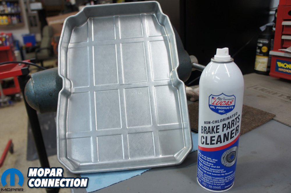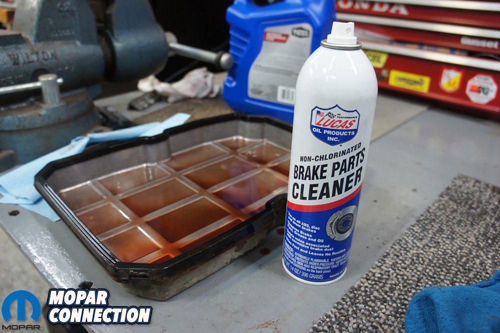 We removed the rubber seal and used Lucas Oil Brake Parts Cleaner to clean the pan. Lucas Oil Brake Parts Cleaner is Non-Chlorinated and VOC compliant in all 50 states. We have used many different brands of brake parts cleaner but Lucas Oil Brake Parts Cleaner works the best. The cleaning power and strong spray results in less chemical usage and quicker cleaning. It also dries quickly leaving no residue.