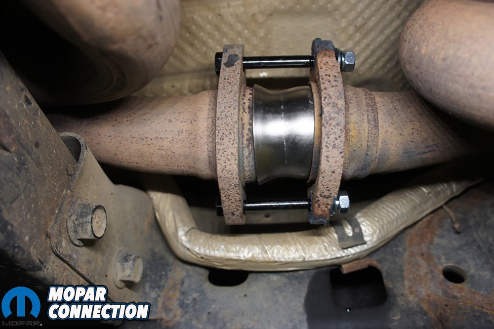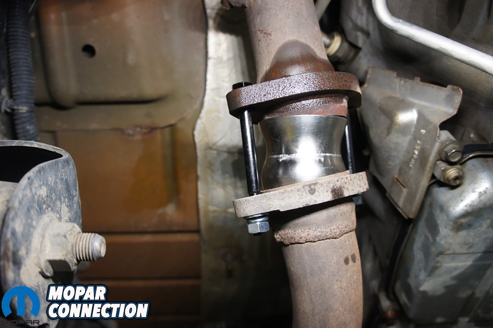 We also had a RedRock Exhaust Spacer Kit from Extreme Terrain laying around that needed installed since the Jeep was lifted. This kit would give our font driveshaft more clearance anytime the suspension was at full flex. We decided this would be the perfect time to install it and knockout two birds with one stone.