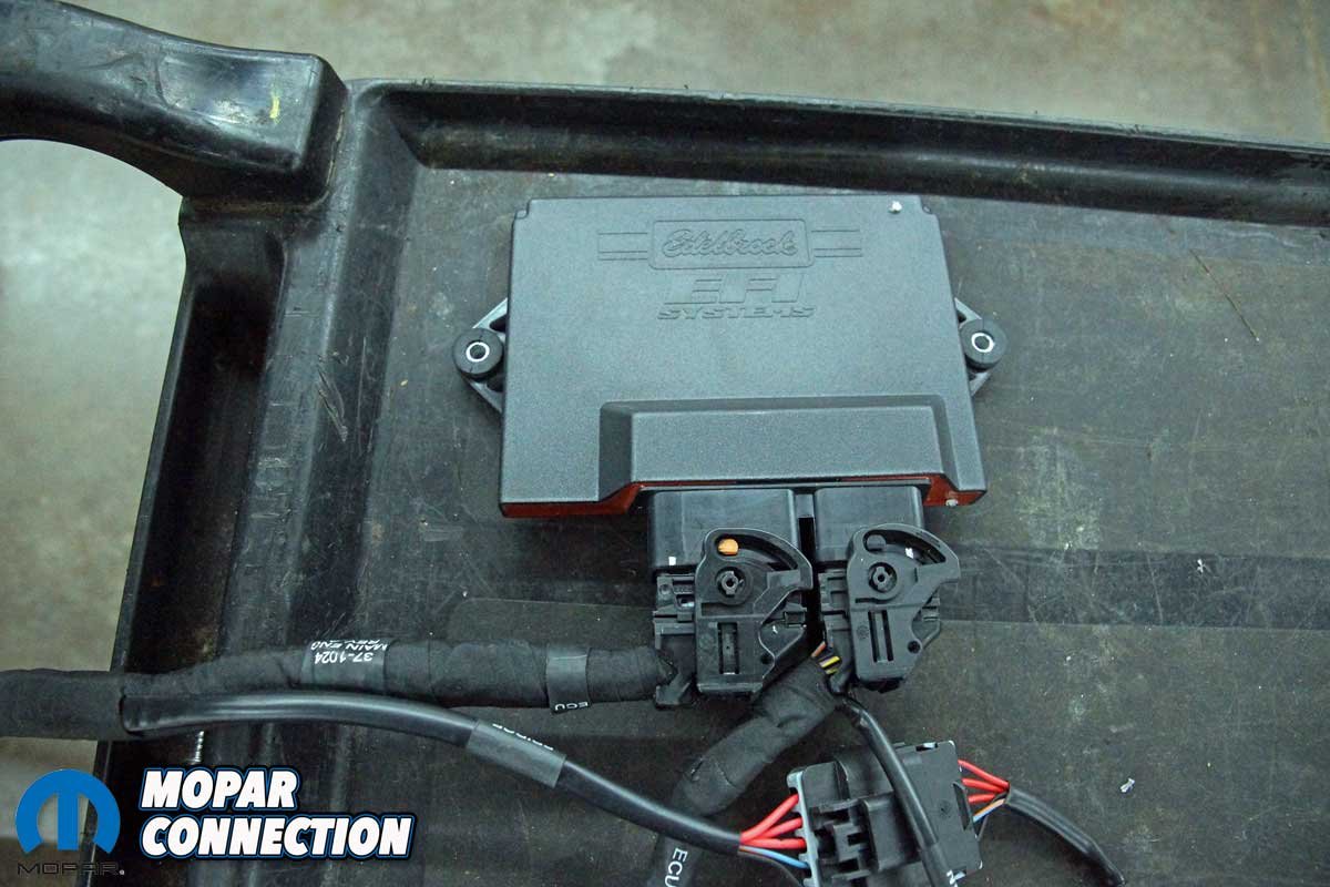 Above Left: Edelbrock has developed the Pro-Flo 4+ EFI management kit for the GEN III Hemi. Above Right: The Edelbrock ECU and wiring harness run the Hemi without the need for the factory wiring and PCM.