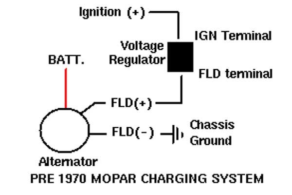 Above Left: Between 1961 and 1969, Chrysler products used an alternator with a B-circuit design. That meant the voltage regulator was wired “B”efore the field windings housed in the alternator. The regulator controlled the 12-volt side of the circuit. Above Right: With the introduction of its electronic voltage regulator (EVR), Chrysler switched to an A-circuit design. The voltage regulator was wired “A”fter the alternator housed field windings, and it controlled the ground side of the circuit. (Photos – www.bzerob.com)
