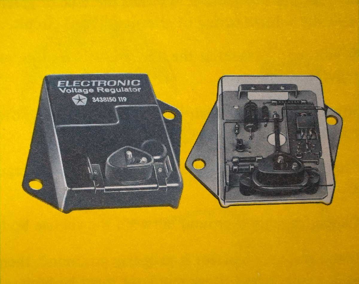 Above Left: The square back alternator was introduced for the 1972 Chrysler models. It was a more technician-friendly design because it could be serviced more efficiently. Like previous alternators, three positive and three negative diodes were attached to rectifiers and heat sinks. Above Right: EVRs more precisely maintained the charging system voltage to keep the battery within the target voltage (13.5 – 14.8 volts). The EVRs were maintenance-free and required special testing equipment to verify their operation if a technician suspected a problem. (Photos – Fundamentals of Electricity and Basic Principles of the Alternator – Chrysler Training)