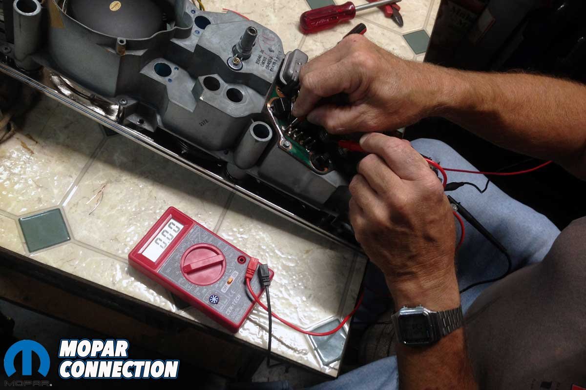 As the last step, Gillespie used a multimeter to test the soldered areas. Fortunately, the resistance values of each repair fell within the acceptable factory range. At this point, we began the reassembly of the dash components.