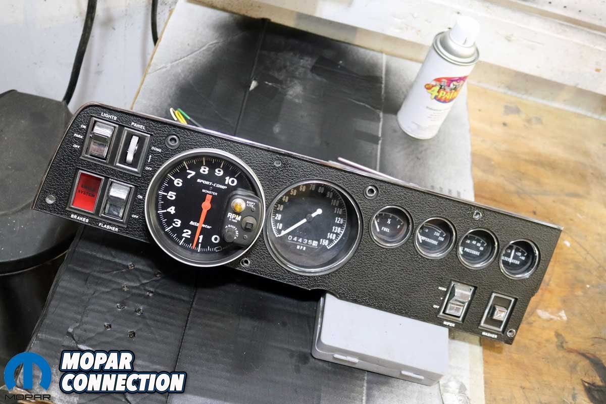 After the Rust-Oleum dried, we followed with Chestnut Poly Suede textured paint from 8774Paint1, which was a perfect color match for Brazen. 8774Paint1 also supplied a textured satin black for the plastic bezels. In both cases, the textured paint flawlessly mimicked the factory appearance.