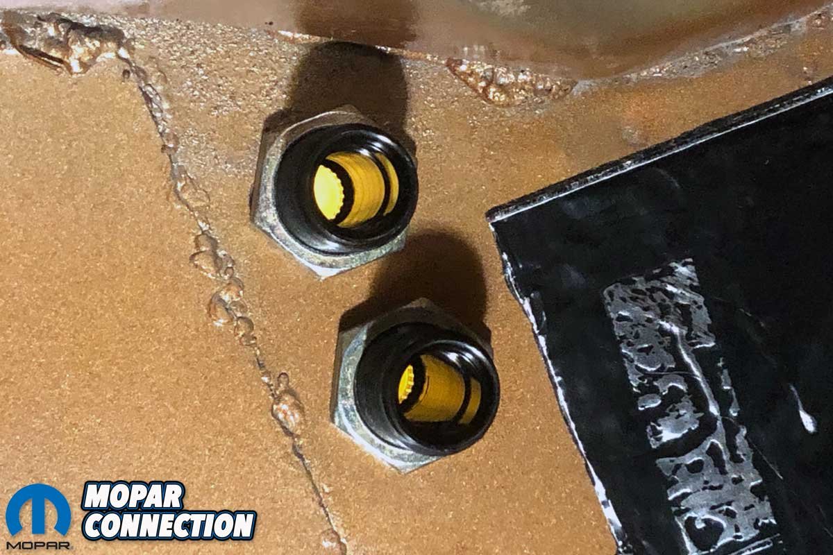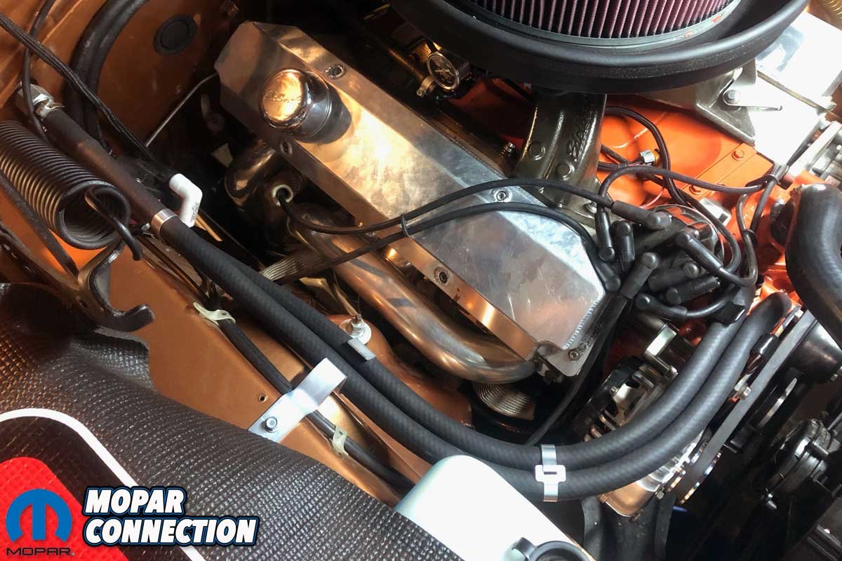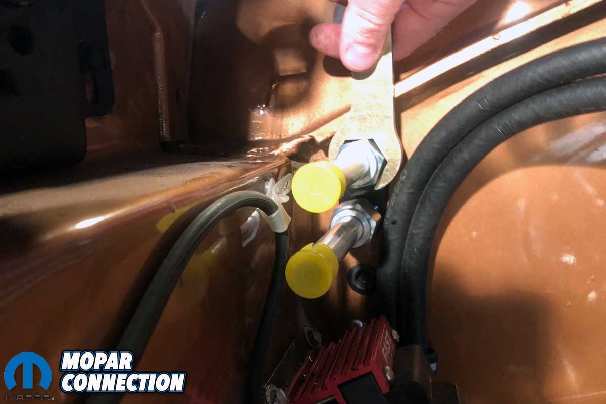 Year One helped us maintain the hoses’ location. We inserted the hoses in a factory clip we had attached in the factory location on the fender apron (part no. A0336). We also tethered the hoses to one another with a pair of aluminum heater hose straps (part no. W0102).
