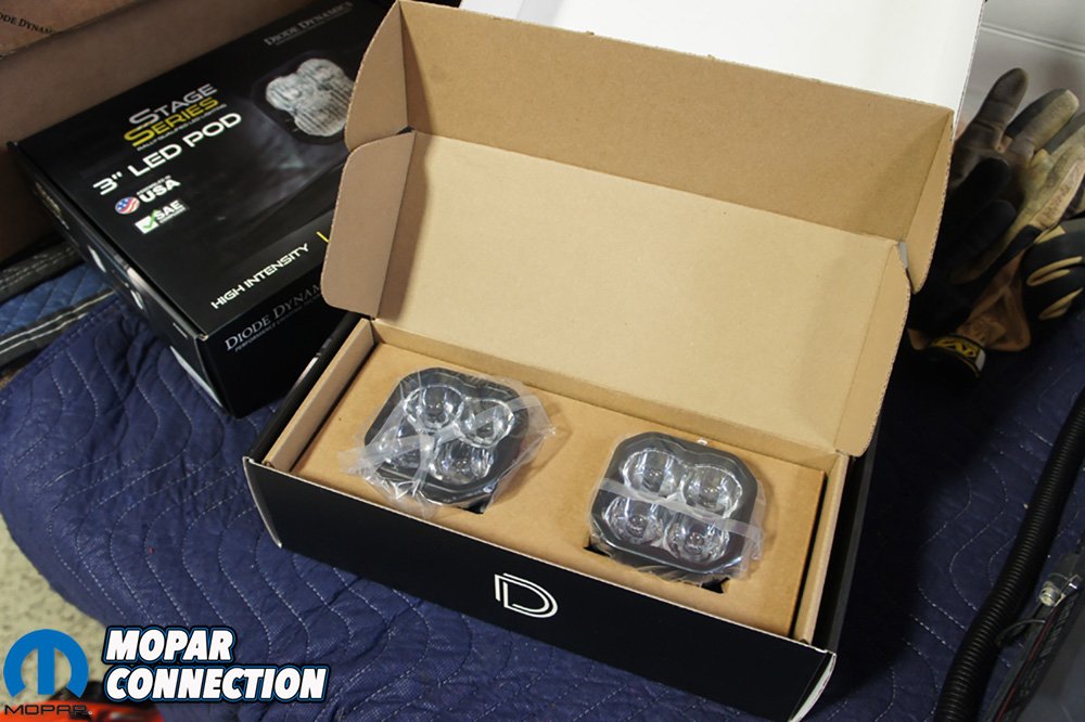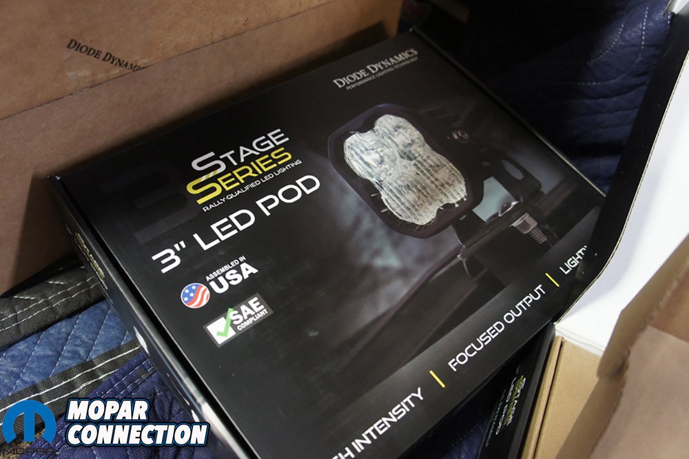 Diode Dynamics has four different size LED Pods including the Stage Series C1, Stage Series 2”, Stage Series 3” and Stage Series 5”. We chose to go with all Stage Series 3” (SS3) LED Pods, but still needed to decide on what type of beam pattern would be best for each area. The Stage Series 3” can be optioned with Flood, SAE Driving, Combo, SAE Fog and Spot patterns. You read that correctly, Diode Dynamics offers SAE certified Fog and Driving LED Pods that are legal to use on road.