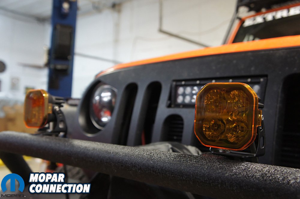 Above Left: You can see all the lights turned on Project Train ‘n Thrash. Above Right: We decided to leave the amber covers off of the fog lights since we use them more often than the pillar or bumper SS3 pods.