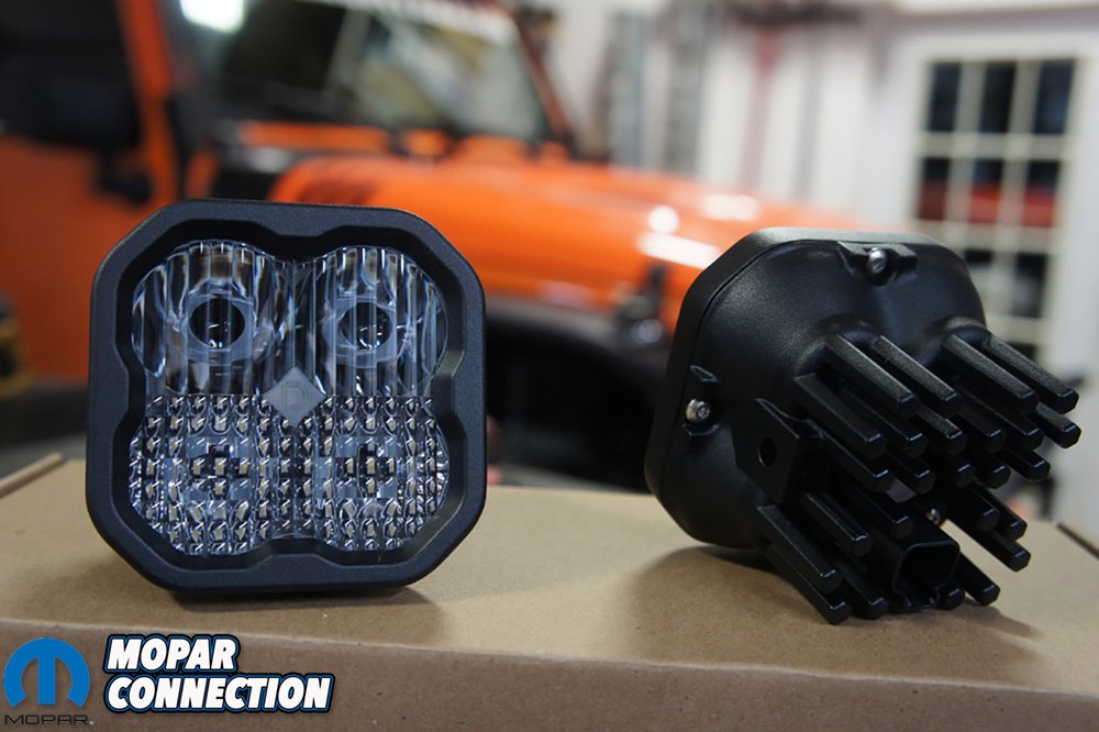 Flood lights shine a very short distance but projects a very wide pattern. The 60×60 degree spread makes Diode Dynamics SS3 Flood LED Pods an ideal choice for backup lights, attached up high on a roof rack as campsite lighting or anywhere that you need a ton of light close to the Jeep. They are also a good option if you do a lot of late night rock crawling where you are moving slowly and need to light up the ground around you.