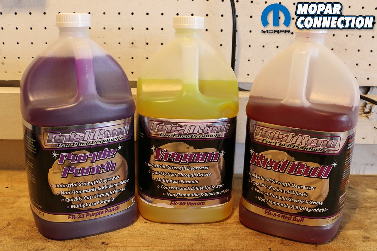 Above: Finish Renu Car Care Products offers a full line of degreasers, and sent us samples of their Purple Punch, Venom and Red Bull cleansers to put to the test.