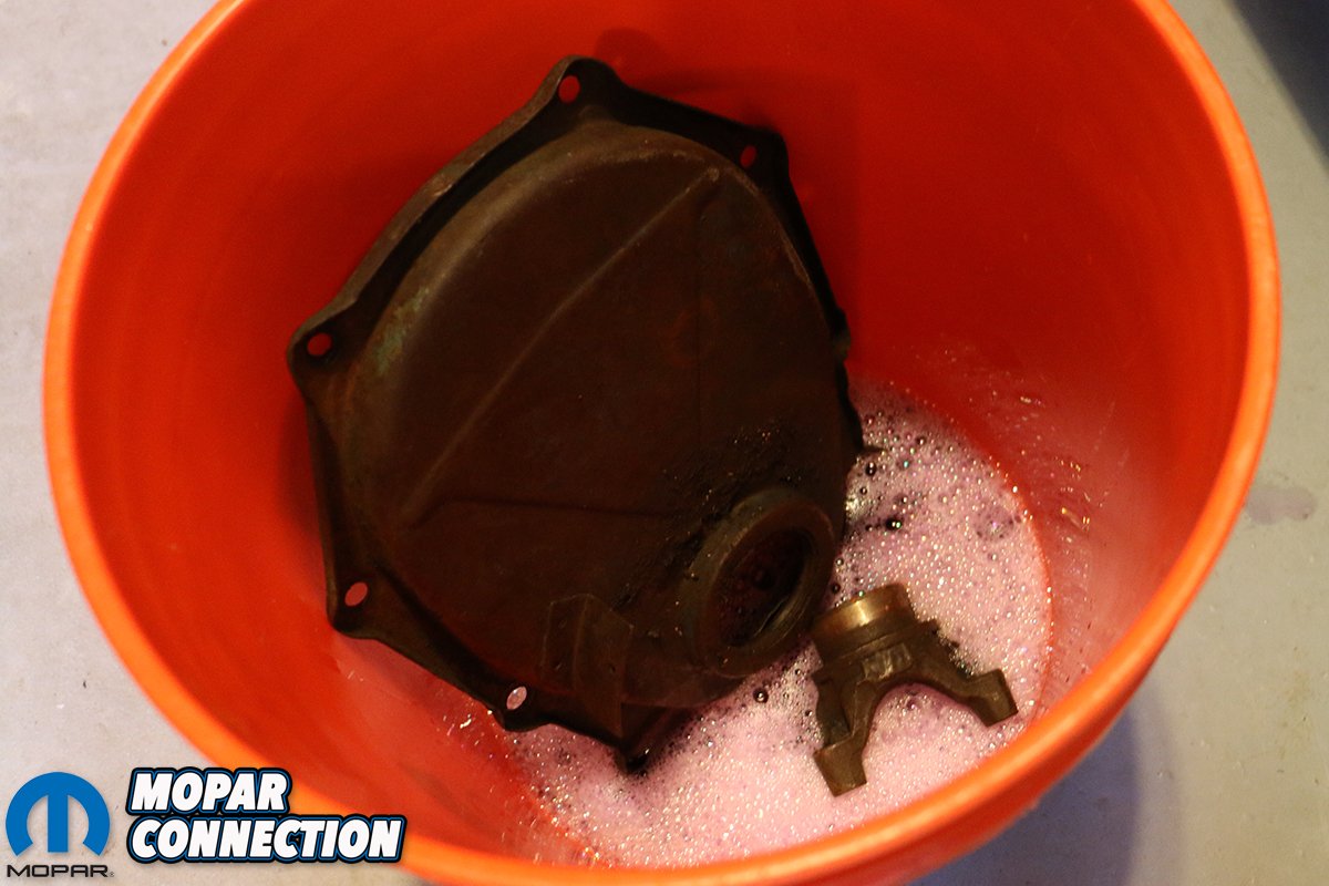 Above: After a few hours of soaking you can see the difference Finish Renu’s Purple Punch made on the inside of the timing cover. Sure, it can’t undue the damage of rust, but look at how it ate away at the grime and caked-on grease! The yoke is grime-free as well.