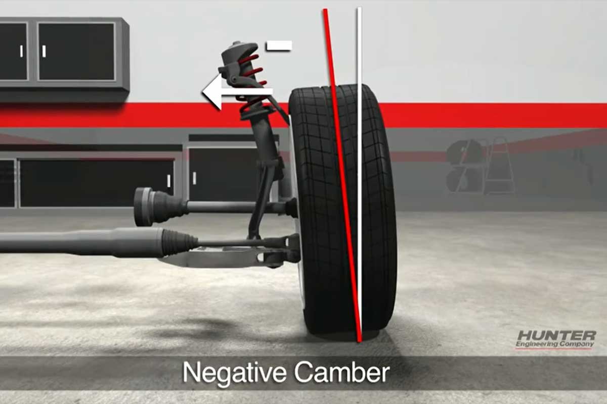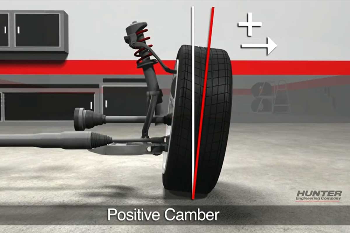Above Left: Bias-ply tires were factory installed for years on all vehicles. Most manufacturers recommended positive camber (top of the tire tilted outward as viewed from the front). Above Right: With the advent of radial tires, the manufacturers moved to negative camber (top of the tire tilted inward as viewed from the front) to take advantage of the tire design and keep it planted during cornering. (Hunter Engineering Photos)