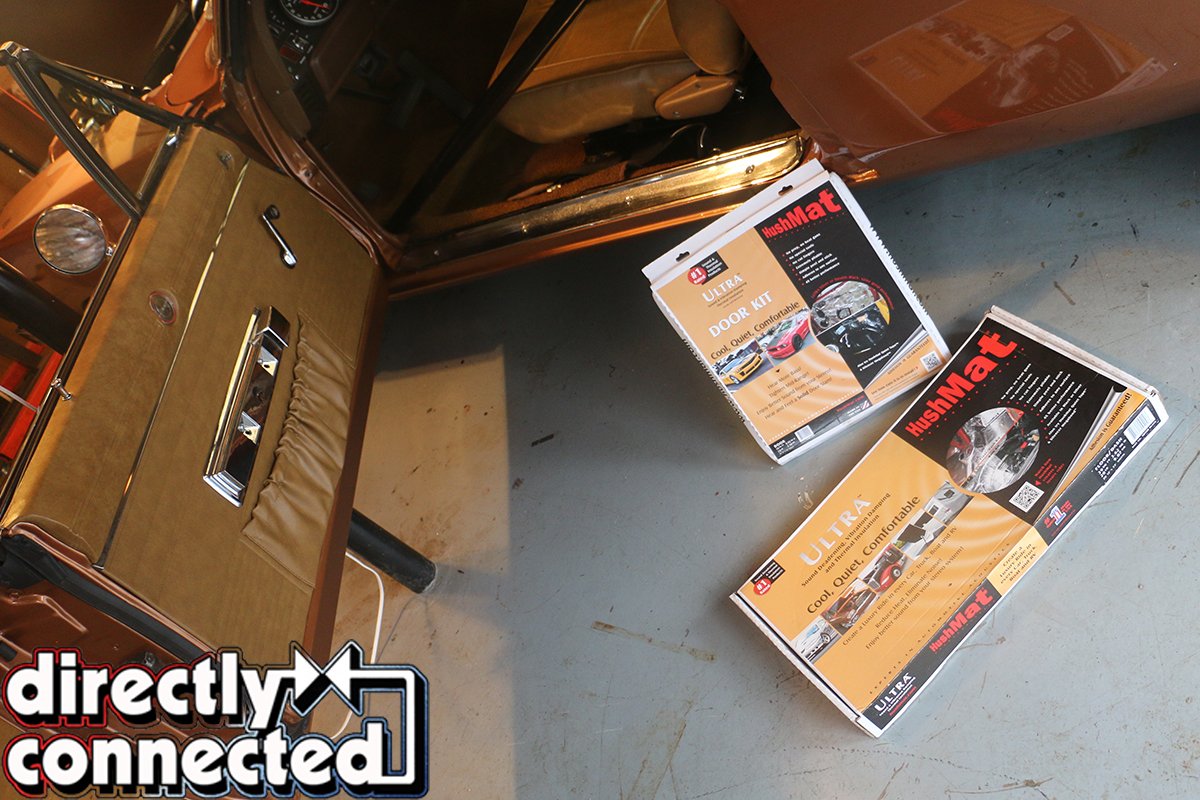 Familiar with our build, Classic Industries’ President Jeff Leonard suggested we “bring out the big guns” and try out their new HushMat Ultra kits. The 1.5mm-thick, pressure-sensitive dampening material is made from a layered foiled aluminum and specially-formulated visco-elastic polymer that not only instantly adheres to any surface (metal, plastic, fiberglass, or wood with zero surface prep), but has been proven to significantly reduce road noise, vibration and provide noticeable thermal insulation. The material comes in either two sizes, square or rectangle, is easily cut with a pair of household scissors or a box knife, and is available in silver or black.