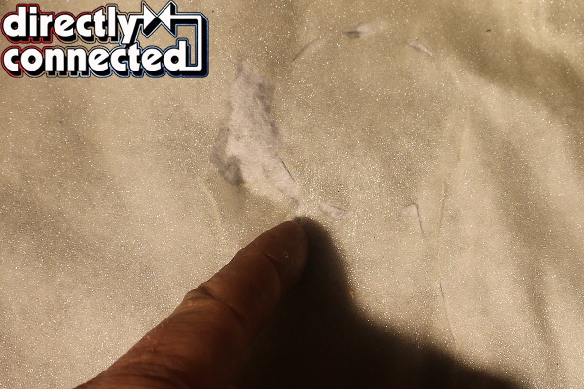 Above left: Thankfully, the pre-layout of the trunk was far less complicated than the floorboards. Besides our trunk and filler neck, not much trimming was required. Above center: Long rectangle sheets cover up the trunk quickly and easily. Be mindful of the many contours of the trunk floor. Above right: Nearly done.