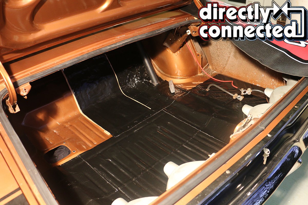 Above: We reached out to Classic Industries for suggestions to solve our harsh road noise and vibration issues. They suggested their new HushMat sets, which we chose their Floor/Firewall, Door and Trunk sets (shown). We also opted for a retro fleece-lined trunk mat to cover up our HushMat sound deadening.