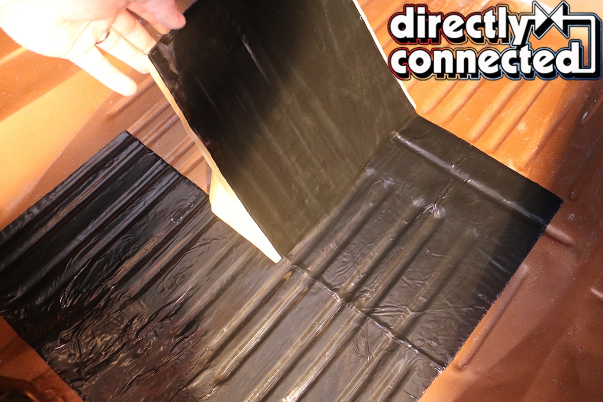 Above left: As per HushMat’s instructions, no special tools were required to lay down the adhesive-backed sound deadener. As shown, the material aptly bonds to every contour and crease in the sheetmetal, so measure accordingly. Although the HushMat does have some elasticity, it can tear if stretched too far. Above right: We ran the HushMat all the way beneath the backseat, as so much vibration and resonance from our 3-inch exhaust carried up through the floorboards.