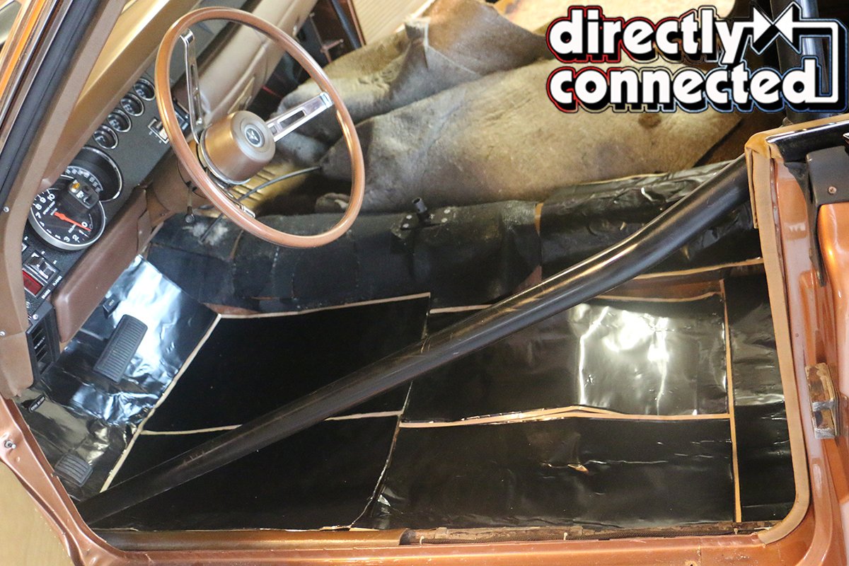 Years earlier, we worked together with Classic when it came time to restore our Charger’s interior. Besides picking up one of their OE-quality molded carpet kits (with pre-attached jute padding), we also opted for one of their EVA sound deadener kits. The die-cut EVA mats didn’t directly adhere to the floorboards, but sat in place under the passenger’s feet and over the transmission tunnel. While effective, the rowdiness of our Charger and the degree of vibration that 700 ft. lbs. of torque that gets sent through the entire car required a little more.