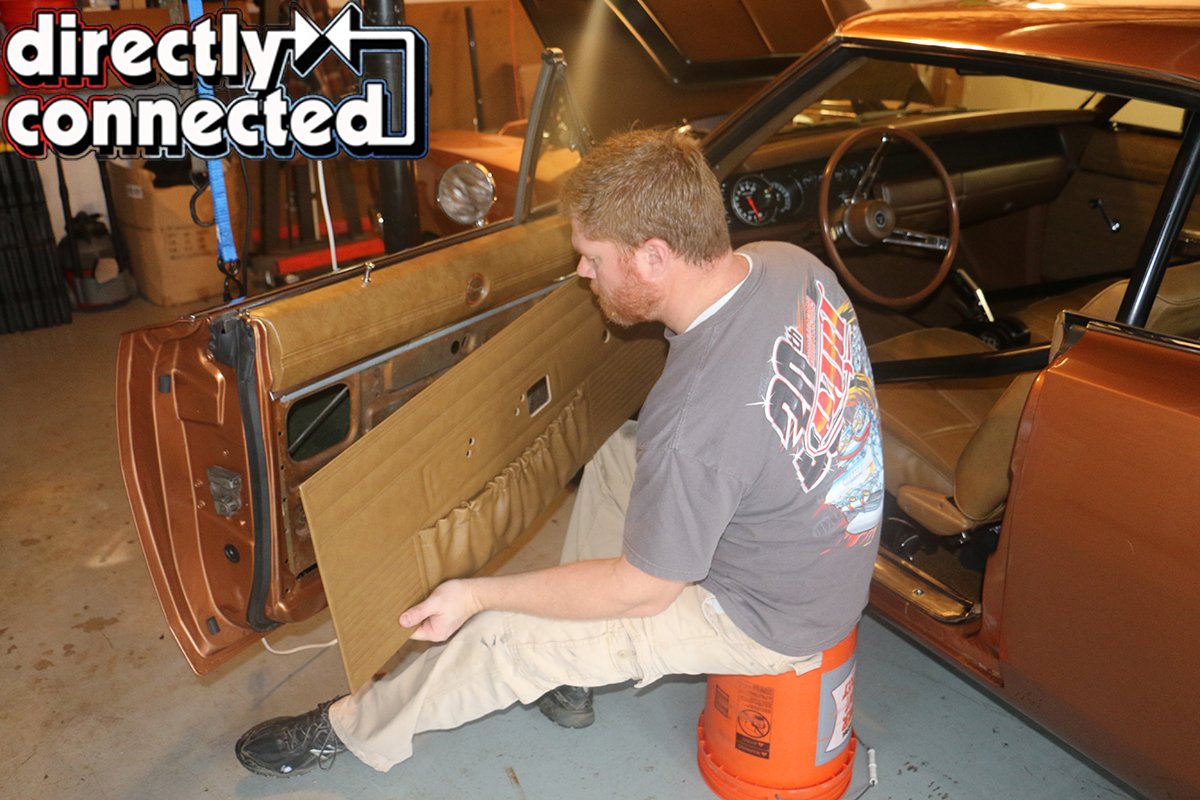 Above left: Because the Door Set doesn’t provide enough material to do both the inside of the outer skin and the outside of the door frame, we opted for the latter. Above right: Because we’re not running a radio, we covered up the factory door speaker holes and made sure to trim around the window regulator and door handle hinge.