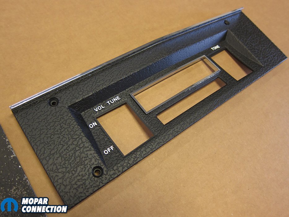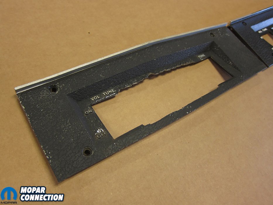 Speaking of which, it wouldn’t have made sense to have a dilapidated dash pad and cracked bezels covering those pretty RTX faces, so Classic Industries was the next stop. Their bezel kit (P/N MB854) features exact reproductions of the original bezels, right down to the textured grain finish. A point and click of the mouse sure sounded better than fixing cracks and hand-painting letters on original parts. We can’t imagine how much time the new bezels saved us.