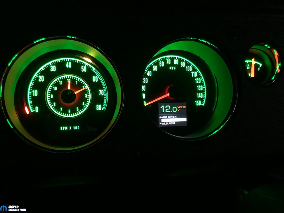 Above Left: We played around with all the color options. Above Center: The bright white back light really made the gauges pop. Above Right: We settled on more of a soft white glow that resembled the original incandescent bulbs.
