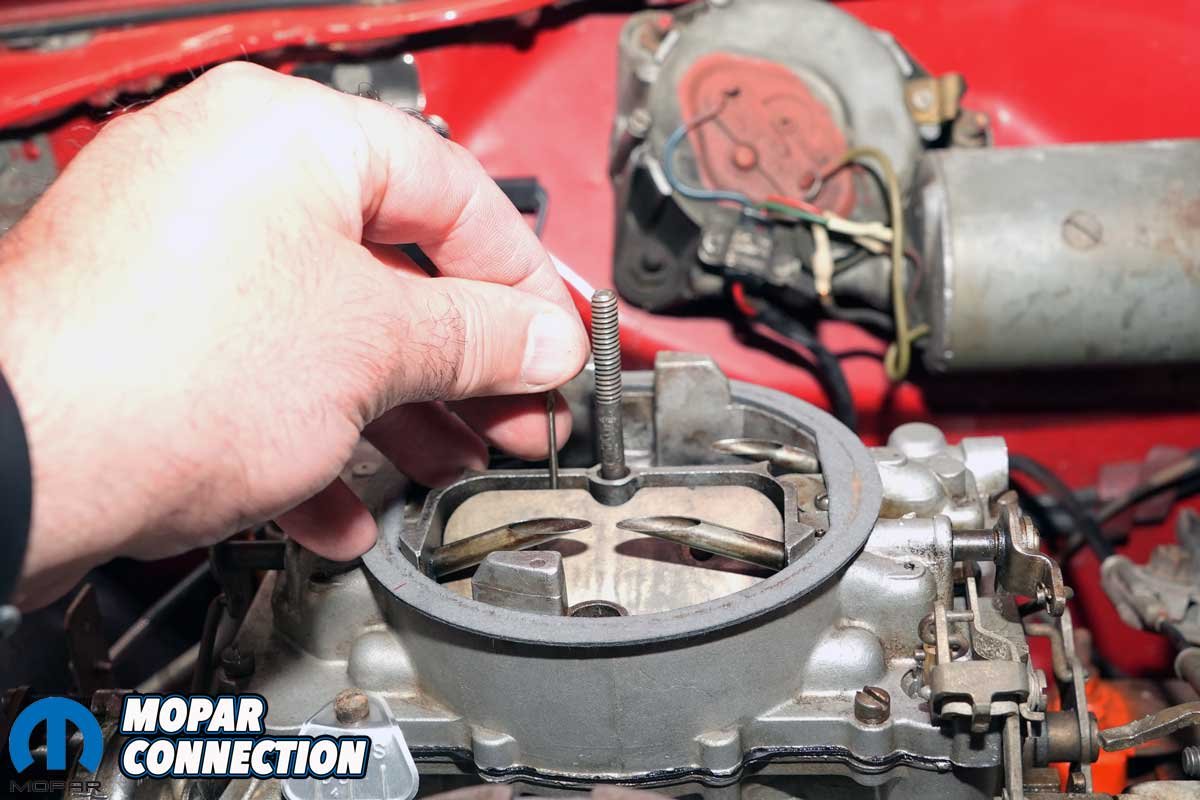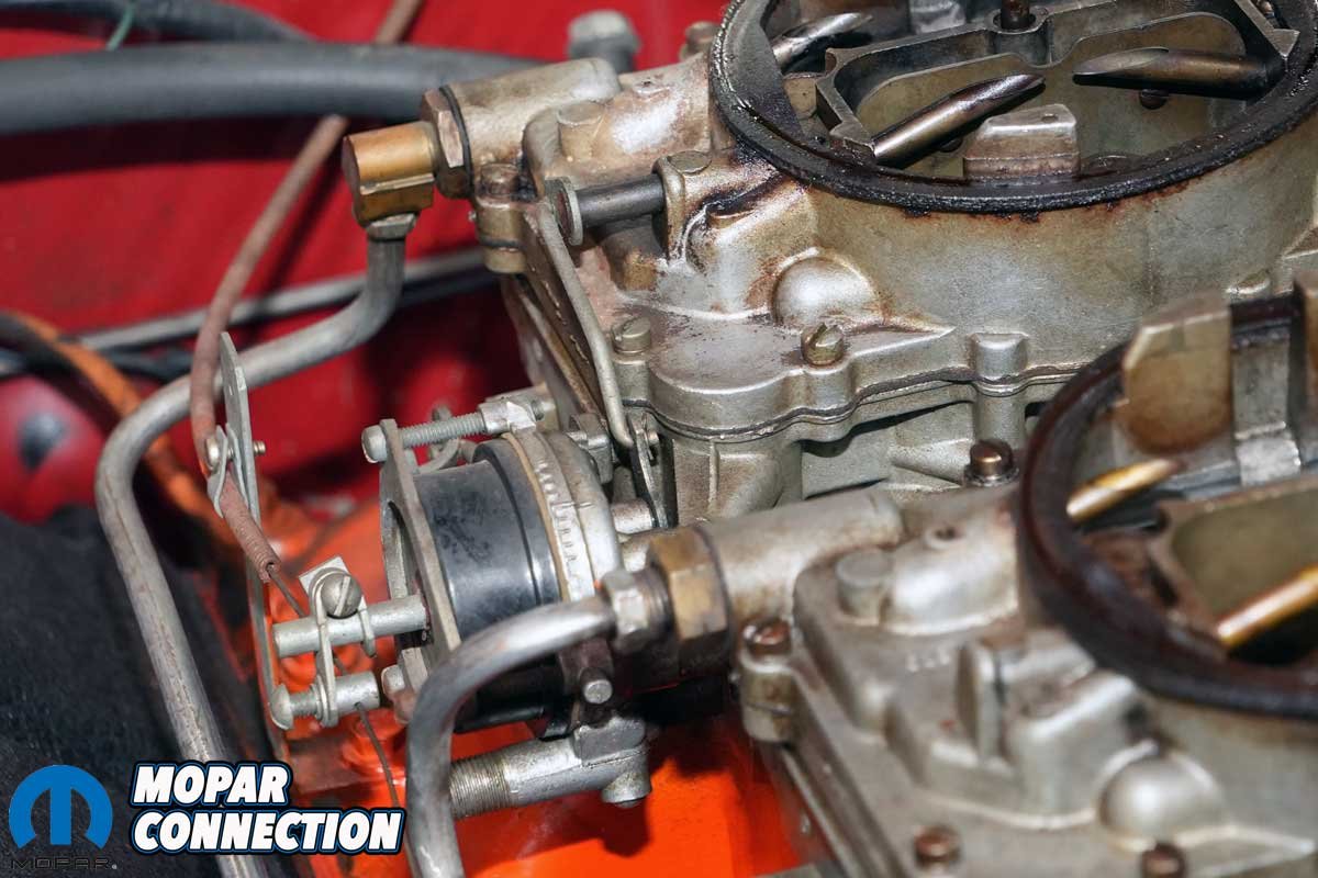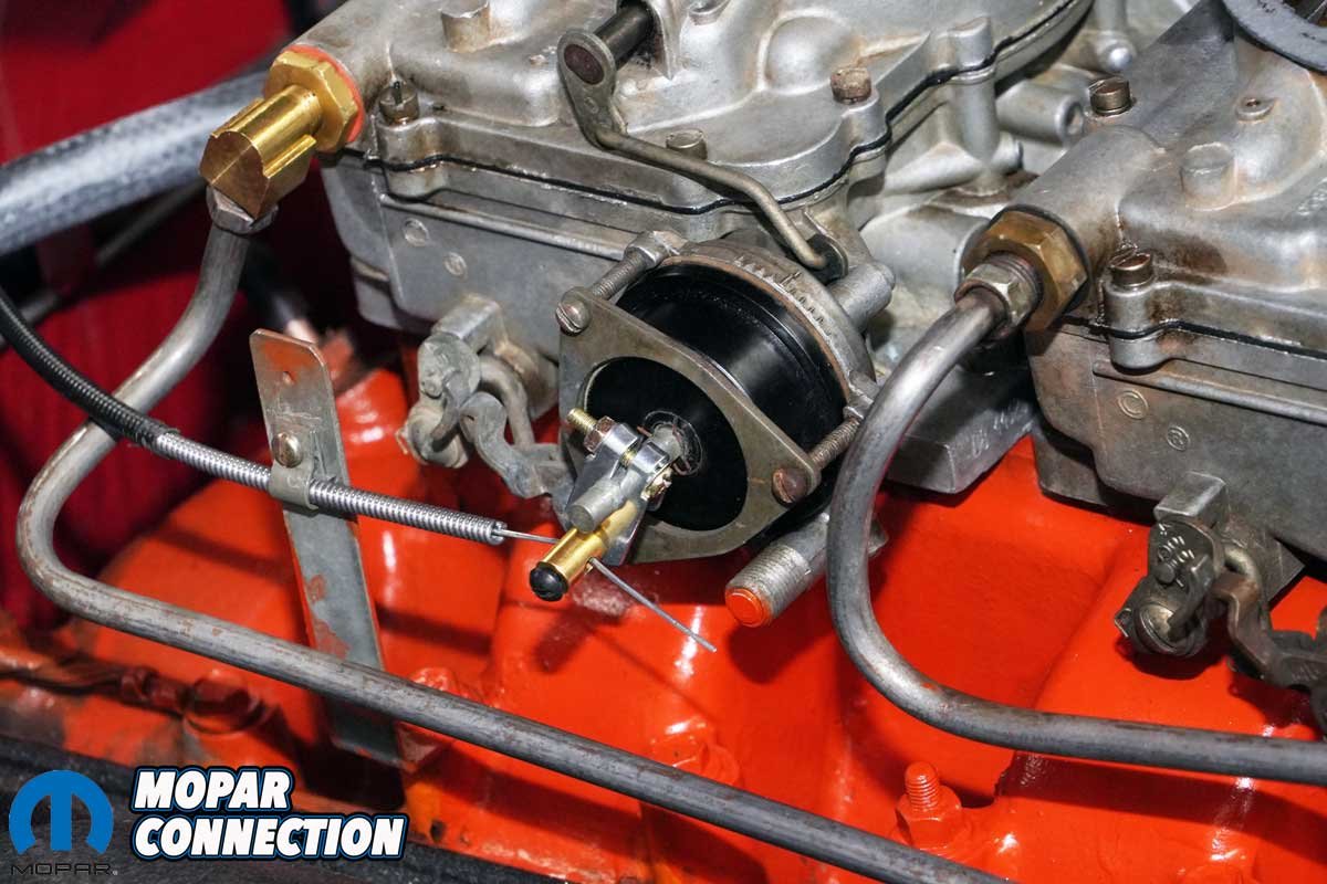 Satisfied with the installation, we turned the key to start, and the engine stumbled and started. After adjusting the fast idle speed, we let the engine run for a few minutes, again looking for leaks. We pushed in the choke knob and gave the gas pedal a quick stab, dropping the engine to idle. After a quick idle speed adjustment, the Hemi idled much better than it had since our ownership.