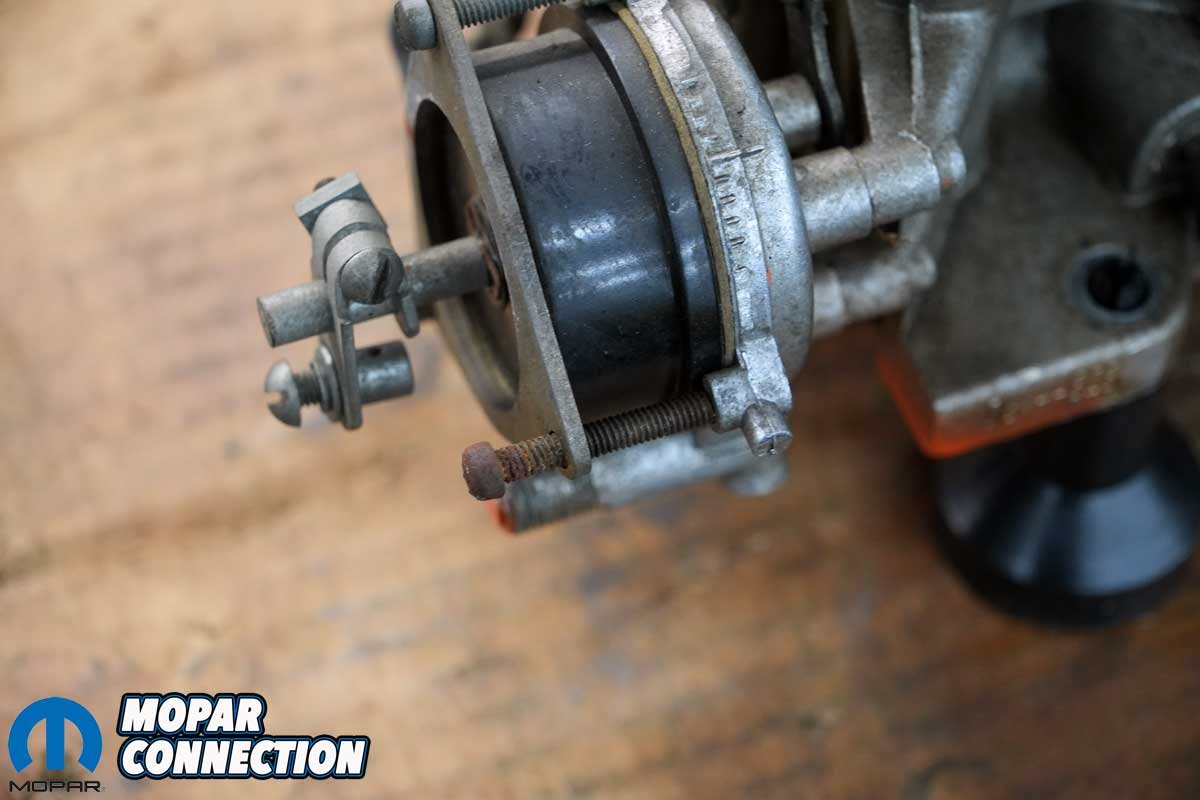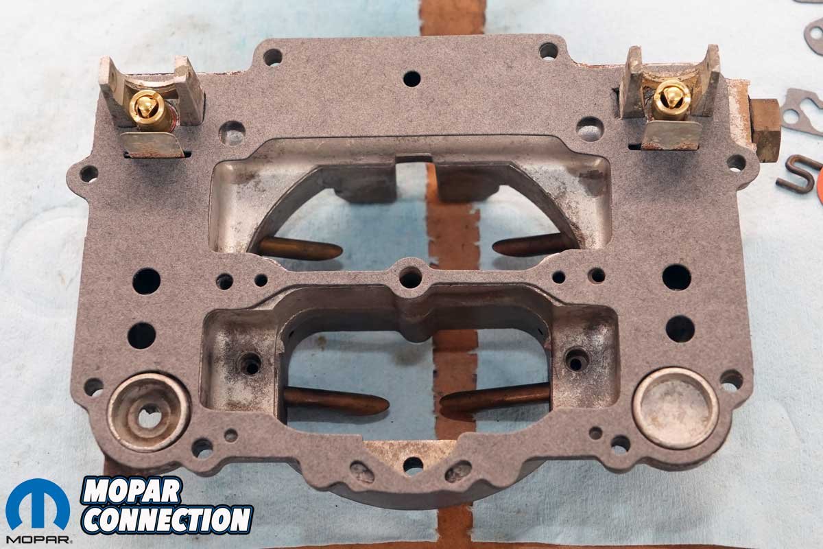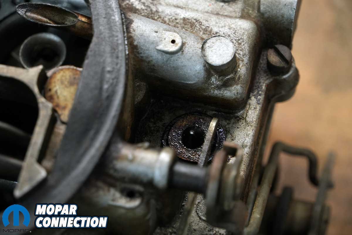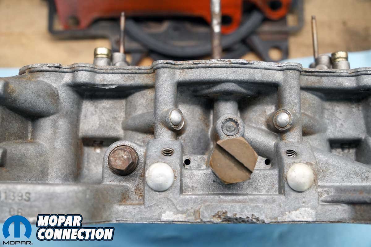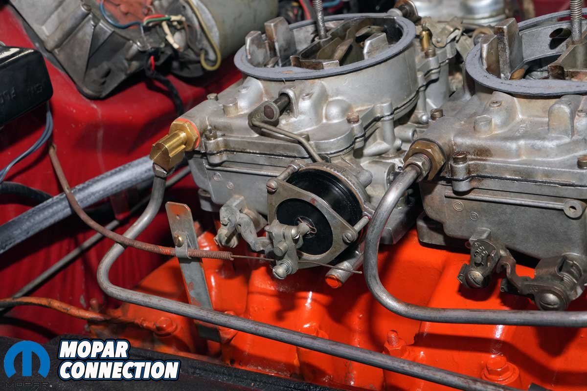 Had the dealership (Colony Chrysler Plymouth Imperial) replaced the carburetor during the original owner’s tenure with the Road Runner, or had he done it himself? We know the carburetors have been on the factory aluminum manifold for over fifty years. In both cases, the carb tags were gone, leading us to believe someone had previously been in the carburetors.