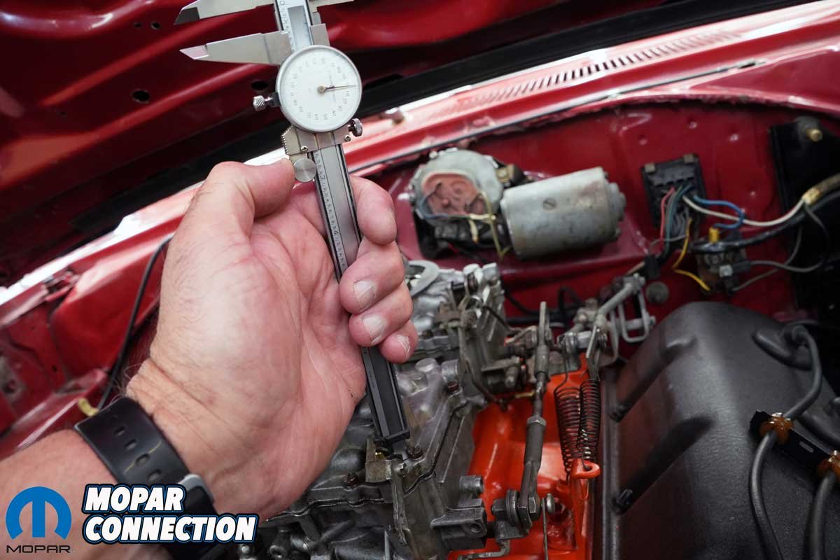 Above: To adjust the stem’s stick out above the air horn, we had to bend or, in our case, straighten the accelerator pump linkages to bring the stick out within specifications. After several minor adjustments, we achieved 0.437 inches, which fell into our desired specs.